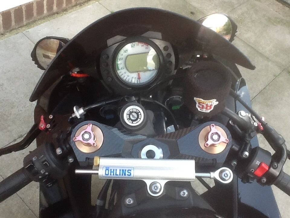Low mileage. Immaculately looked after. Scorpion red power gp1 exhaust. Tinted screen. Short levers. Big spotter mirrors with integrated indicators. Tail tidy. Mini rear indicators. new red race chain. Anodised bar ends preload adjusters. anodised crash bungs for swing arm and forks. One off vented hugger. Tank protectors. Carbon yoke protectors. Optimate battery charger. Front and rear paddock stands plus all standard parts to put back to standard exhaust. Screen indicators etc.