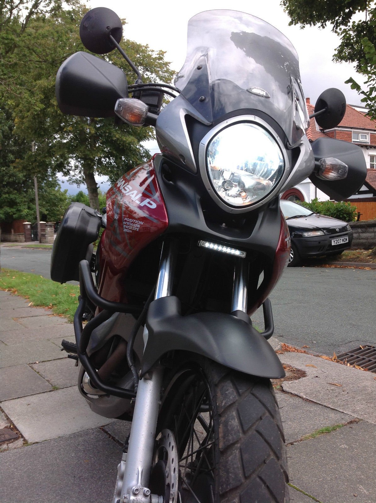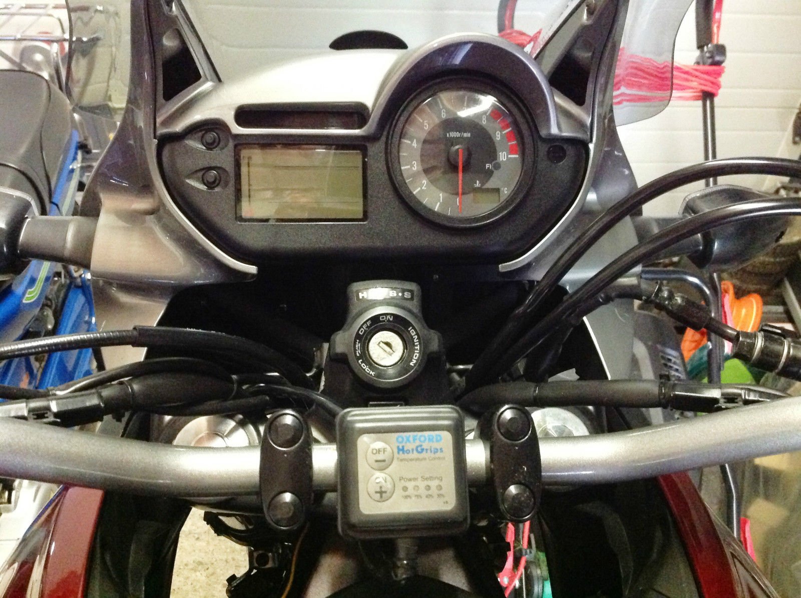 Front LED Running Light. Oxford Heated Grips. Chain OilerSide Panniers