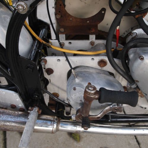 Comes with a V5C registration document showing an age-related cherished number. The engine kicks over freely with plenty of compression. An ideal café racer or Triton project with lots of potential. Features include Borrani-style rims and twin-leading vented front brakes.
