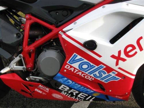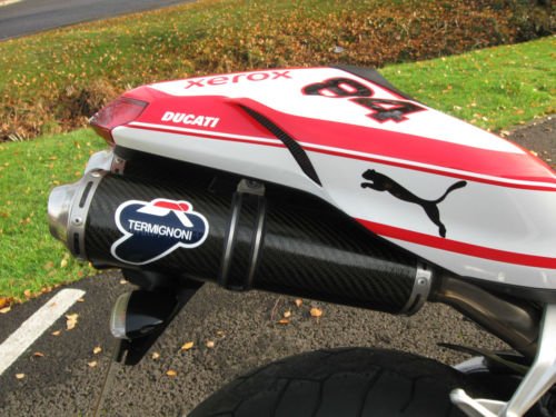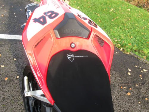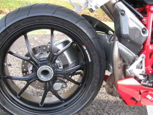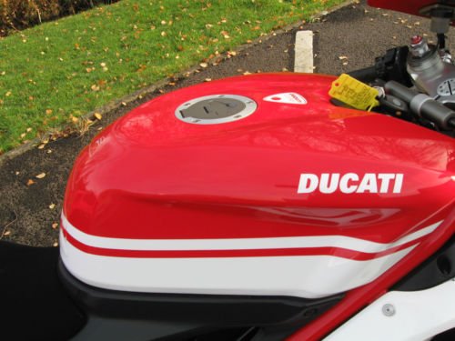 Other upgrades include uprated clutch actuator which lightens the clutch action. it has carbon front mudguard. hugger. a seat cowl. Ducati performance seat. frame plugs and a Meta Alarm.