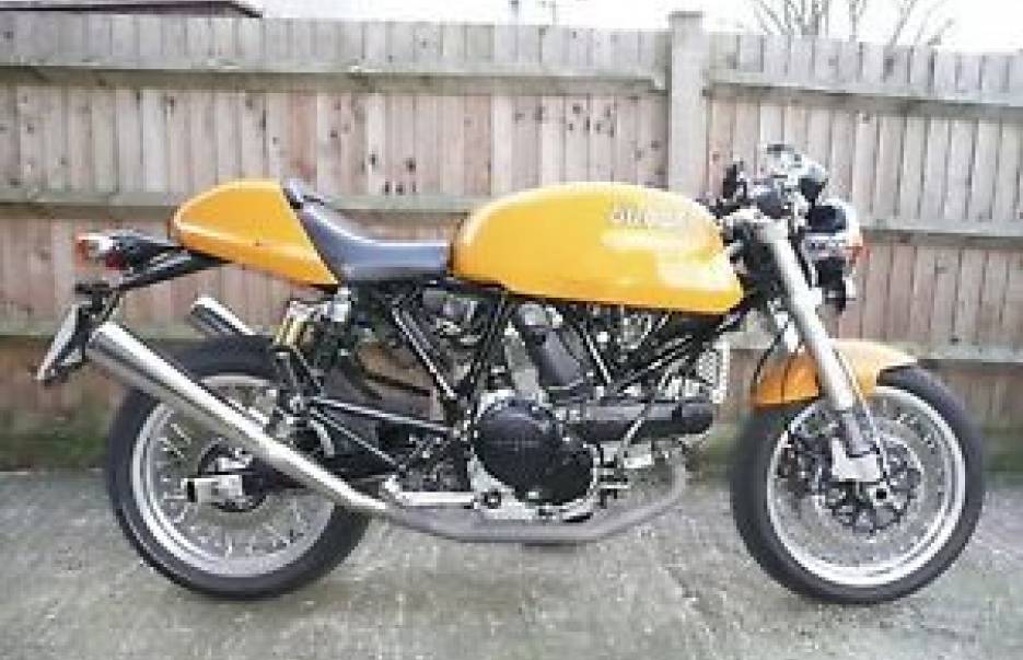 2008 Ducati Sport Classic Biposto ( two seater ) in the classic Burnt Yellow with black Monza Stripes Regretfully I have to sell my Italian beauty.