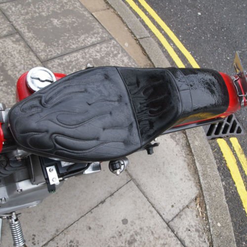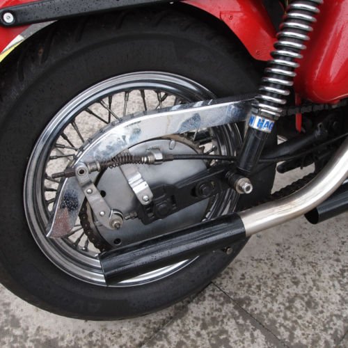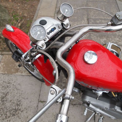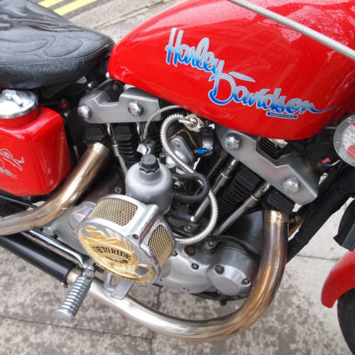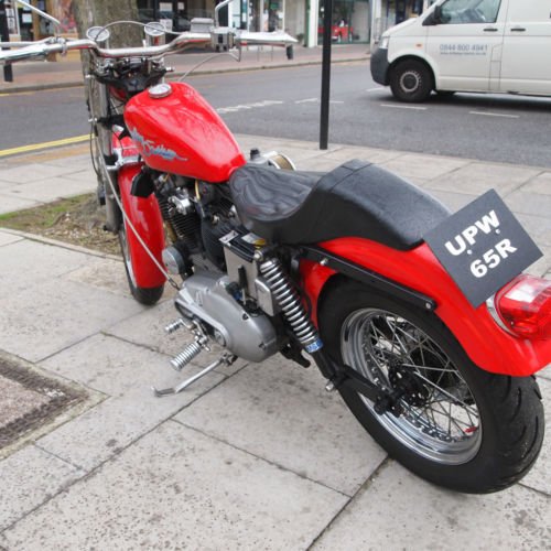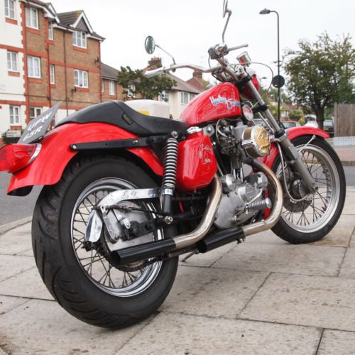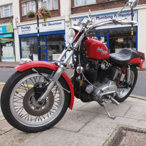 Here we have a ready-to-ride and use Harley-Davidson Ironhead 1000, 1977 R reg: new tyres recently fitted. Electric start XLT model converted to custom. Chain drive, 4-speed. Rides well. Comes with V5c registration document. Mot to September. Original key. Fitted with SU carburettor, and comes with the standard carb if you wish to convert back. Corbin seat. Shotgun-style exhausts with silencers fitted. XLT model, which is the touring version with the higher ratio gears for better top-end cruising on long journeys. Overall, a tidy bike that's ready to ride and enjoy. Starts with the first click of the button, with a very nice-sounding engine.