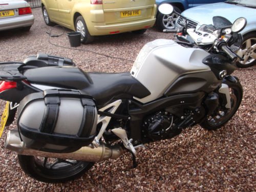 Welcome to the sale of this BMW k1200r in flat silver with panniers and screen. engine in black. This bike has covered 19k with service history and is a 3 owner bike from new. Very stealth looking machine. Feel free to view by appointment.