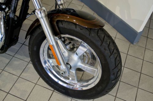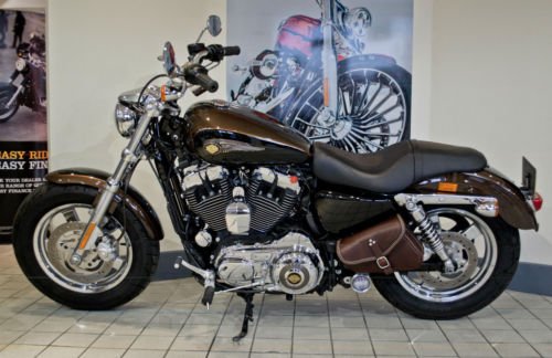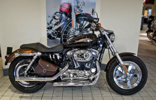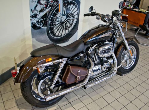Finished in Antique Bronze and Antique Black. Warranty. Alarm and Immobiliser. V&H Mufflers. Chrome 5 spoke Mag Wheels. Leather Bags. Nostalgia Grips. Chrome Engine Covers. 17 Litre Fuel Tank. Forward Controls. Being just 1 of 1500 units produced world wide. this 1200 Custom Sportster is sure to get everyone's attention!