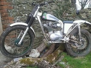We start with bare vapour blasted crankcases. ate type square barrel engine. twin roller type crank. New 230 alloy barrel using Kawasaki piston. New conrod and all bearings and seals. New valve guides. valves and springs. Trials gearbox with special high top gear for improved road speed. Alloy clutch with special four plate system. stronger clutch and lightweight pull. Modified oil pump and breather system. Modified crankcases for easy engine sprocket change. Electronic digital ignition system. Delorto carb. Stainless front pipe with underseat exhaust. which exits exhaust gasses down under rear mudguard so no protruding tailpipe. Fabricated mini kickstart and billet gearlever.