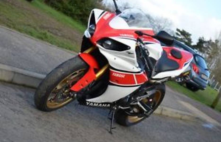 Here we have a Yamaha YZF R1! It is a nice clean example. Slight damage on the fuel tank.