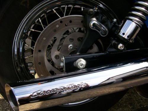 Extras include a quick release touring screen. Screamin Eagle silencers. pillion backrest and chrome luggage rack.