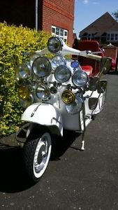 THIS SCOOTER WAS BUILT ABOUT 3 YEARS AGO. IT HAS SPENT THE LAST YEAR ON DISPLAY IN A HAIR SALON. LOTS OF MONEY AND LOADS OF HOURS LABOUR SPENT ON THIS SCOOTER. EVERYONE THINKS THIS IS AN ORIGINAL 60S SCOOTER. HENCE THE COOLEST LOOK WITH A RELIABLE MACHINE. EXCELLENT CONDITION IF NOT MINT AND REAL HEADS TURNER. READY TO RIDE 8 MONTHS MOT AND 11 MONTHS TAX. EXCELLENT GEAR CHANGE. EXCELLENT STARTER. EXCELLENT RIDE. HAS TO BE 1 OF THE BEST LOOKING VESPAS ON THE ROAD. ONE-OFF OPPORTUNITY. VIEWING WELCOME AND HIGHLY RECOMMENDED.
