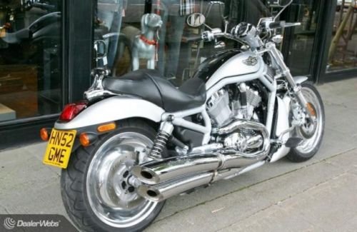 HARLEY-DAVIDSON V-ROD VRSCA. 1131cc. 2003 52 Reg. 26. 49 miles. Anniversary Silver & Black. Partial Service History. 1 yrs Harley-Davidson Originals warranty included. UK NATIONWIDE MAINLAND DELIVERY SERVICE - FROM ONLY £150.. There is an additional charge of £99 to cover documentation and facilities fees. An Anniversary V-Rod with a huge spec and a a good dealer history. Stage#1 with Screamin Eagle Chrome Pipes. Progressive Suspension and Screamin Eagle Chrome Fork Brace. Touring Screen. Reduced Reach touring rider seat with matching pillion touring pad and low sissy bar. Highly polished swing arm. belt pulley and wheels. Chrome side stand. upper and lower belt guards. The comfortable riding style also features rider footboards. Altogether a great package.. Add me to your garage! £7. 99 p/x welcome