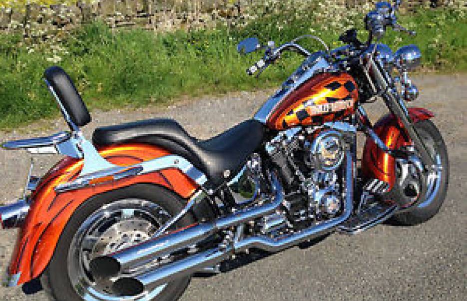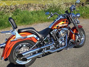 Harley-Davidson Fat Boy, 6100 miles from new. In absolute stunning condition. Far to many extras to list but here is some of them. Harley-Davidson Custom paintwork. Stage 1 tuned. Screaming eagle slash cuts. Mikuni hsr 45 carb. Harley-Davidson custom wheels. full chrome forks. chrome swing arm. billet pulleys. custom inline rear indicators. custom leather seat. chrome crash bars. sissy pad and rack. heritage running lights with shrouds. chrome switch gear. chrome foot boards and rear brake. gear change. digital oil tank temp dipstick. oil pressure gauge. Harley-Davidson clock (time clock) hard wired tom tom sat nav. spark plug covers. probably every other chrome cover and extra you can think off. air horn. The list goes on. Truly a one-off bike. Please call for more info and a chat.