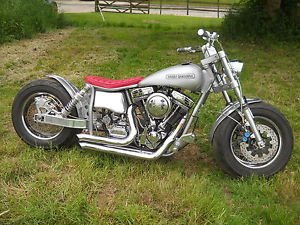 Here is my Harley bobber custom I built it a year ago and haven't used it so try and get some money for house deposit. It cost me 20000 pounds to build but wont get that but heho its got planet frame 100 inch Revteck motor six speed box 4 inch belt drive. The wheels are stainless. The tyres are 230 wide both of them the mudguards are hand made by bloke that builds old 1930 race cars r1 front calipers decent stopping billet rear extra wide j m c swing arm extra wide slabs loads more little extras just ask its on 71 hd book so tax free I don't want to sell but need to get accommodation so I start it at half it owes me up 2 u folks its definitely different and gets major attention it rides really well considering massive wheels.