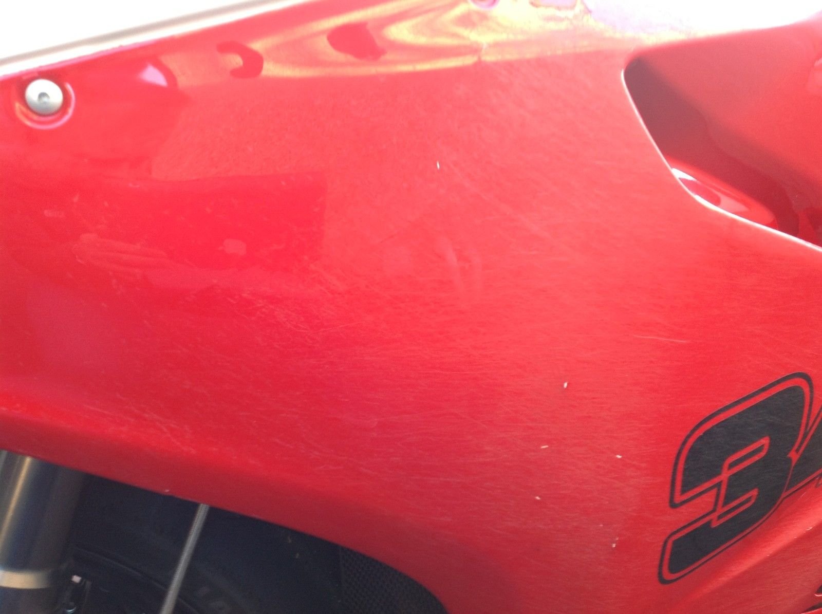 I had a slow low side at knockhill dry tyers wet track. that's why the nose and seat unit is unpainted. the last two pictures show some gravel rash. the tank is not damaged just scratched. i have a all the parts for the Rizoma rear set to be built. plus spare peg and toe peace. i will fit the new parts over the next few days if i have time. i fitted the standard one so i could do a track day at Donington.