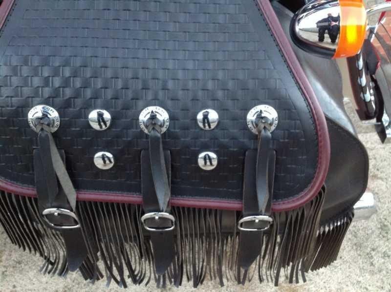 This bike has had the addition of a rack. sissy bar and engine bars.