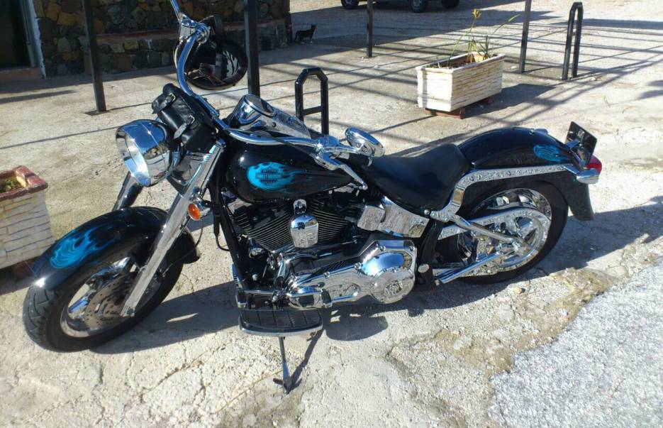 Originally supplied by Three Rivers Harley-Davidson in Watford this bike was specified by the managing director with £6000 of option extras. This stunning rare Fat Boy is 1 private owner from new and is situated in Marbella, Spain.