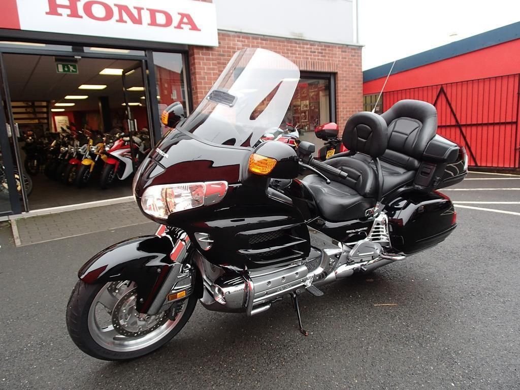 One Owner with only 12820 miles from new. this GL1800 Goldwing deluxe model with air bag in stunning condition fitted CD changer rear speakers and Kuryakyn chrome frame covers. rider backrest and two new tyres fitted and full service & new MOT on sale. We can arrange delivery anywhere in the UK mainland for £150 pounds.