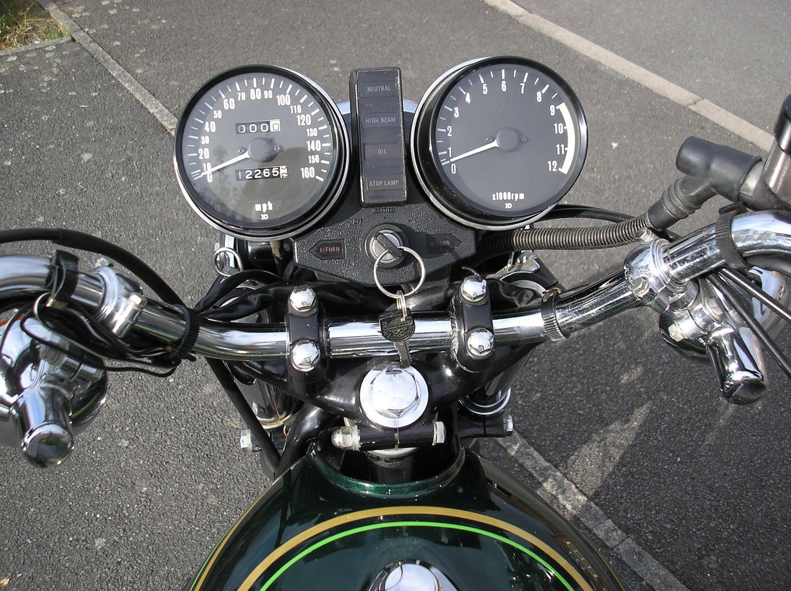 I imported this bike in 2013 from the USA where it had been sat in dry storage since the late 1970's. It had a Vetter windshield. which has been disposed of. hence the front indicators are handlebar mounted. It has had a professional bare metal re-paint to the original Diamond Dark Green. It has a brand new full exhaust system. which has come from Japan. and is manufactured to the same quality as original. New rear mudguard and grabrail. New sealed Motobatt battery. The original wheels are in fantastic condition. The bike runs and rides. with a very quiet un-messed with engine. The original toolkit and owners manual are included. Both original keys fit the ignition. steering lock. and seat lock. The original airbox is included. I will also include parts for a twin front brake disc conversion. if the new owner prefers.
