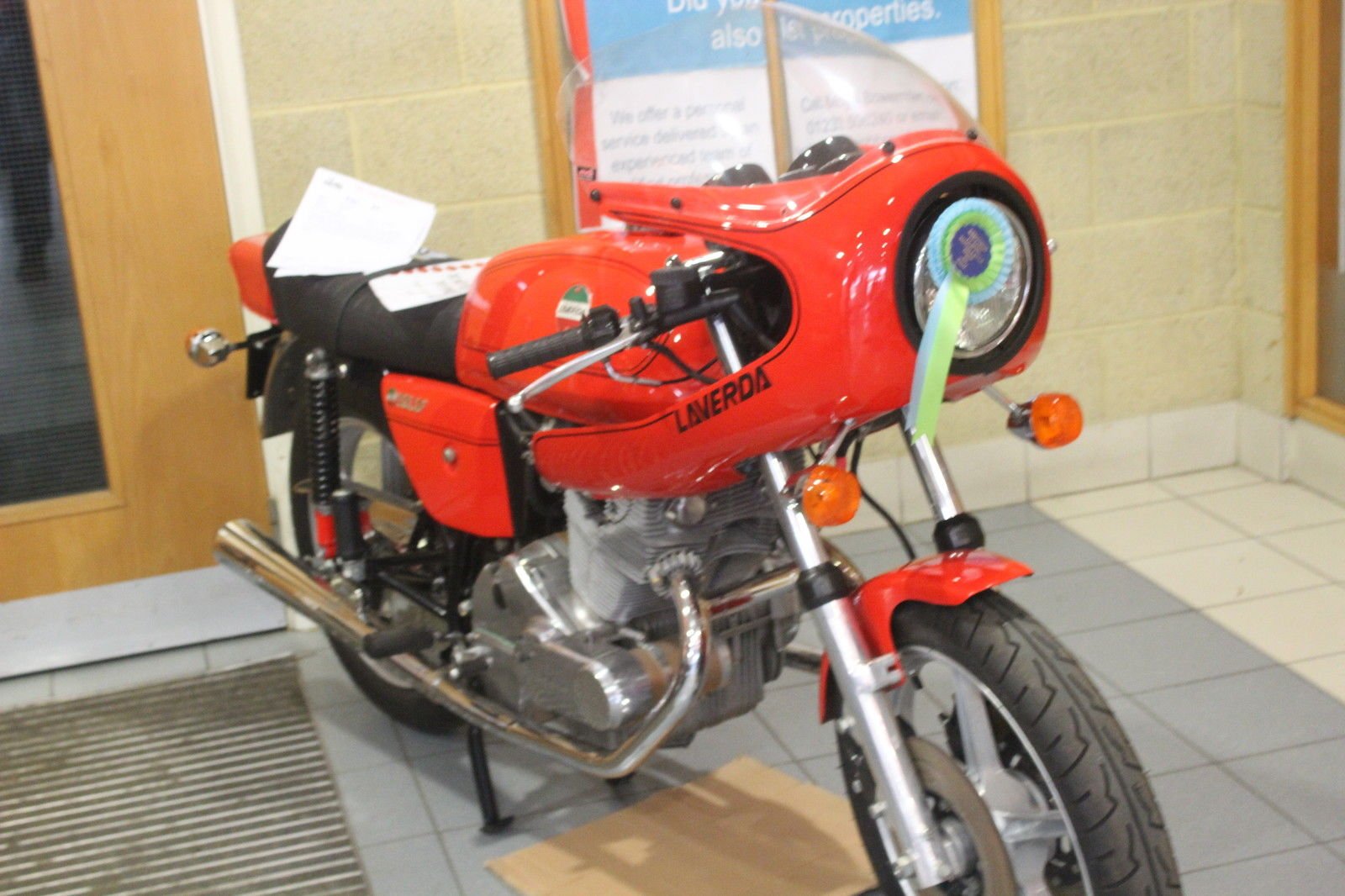 A rare item in the UK. a fully restored Laverda 750 twin. Purchased and restored to a high standard to keep 'forever' but a need for cash means it may have to go. No expense spared. even the headlamp reflector was resilvered! Anything showing any sign of detoriation was repaired. Refinished or replaced. £££s spent on it and it is now probably better than when it left the factory over 40years ago. The Jota stole the limelight with its brute power and prescence whilst the 750 quietly outsold it to the discerning rider who understood there is more than BHP to a motorcycle. Very successful in endurance racing just like its bigger brother the 750s gentle lines and classic engine layout made it the choice of many who did not want the animal that the 1000cc bikes were. Beautifully built to last many are still around today showing the patina of the many miles they are capable of. The engine is an exercise in overengineering. huge ball bearings support a heavy crank and even the cams run in large ball bearings. The alloy castings are top quality and are unlacqered as they have few impurities in the metal to sweat out or dull the polished finish. The mk3 used Nippon Denso switchgear and clocks (just like Honda's 750). Bosch electrics saw to the reliability of the starting. Three Brembo discs stopped it. The best stuff available really. It was an expensive bike new though. if you have to ask. then you probably cant afford it!