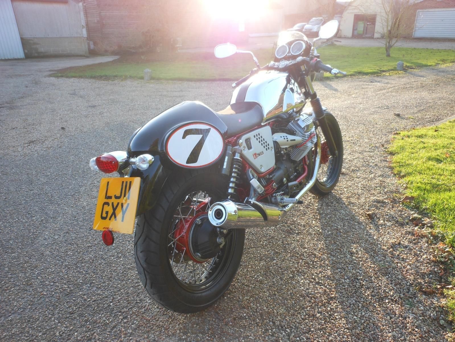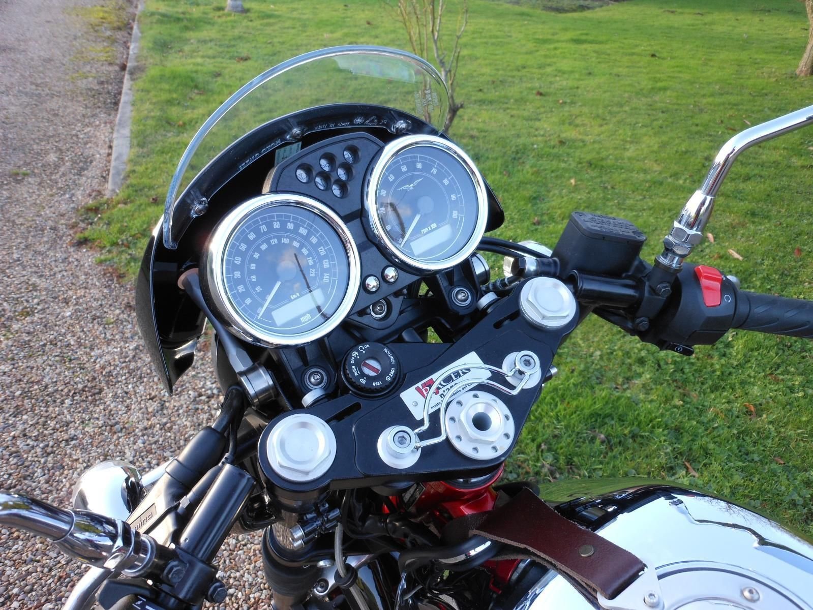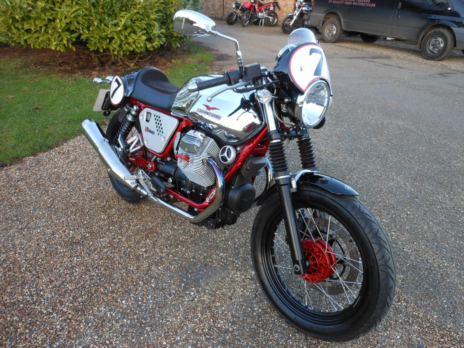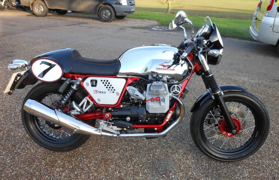 A BEAUTIFUL EXAMPLE OF THE GREAT LOOKING GUZZI CAFE RACER WITH LOW MILEAGE. CHROME PETROL TANK. BLACK RIMS WITH STAINLESS SPOKES AND RED PAINTED HUBS AND SWINGARM. A FABULOUS LOOKING BIKE. TWO OWNERS FROM NEW WITH FULL SERVICE HISTORY. PART EXCHANGE WELCOME.