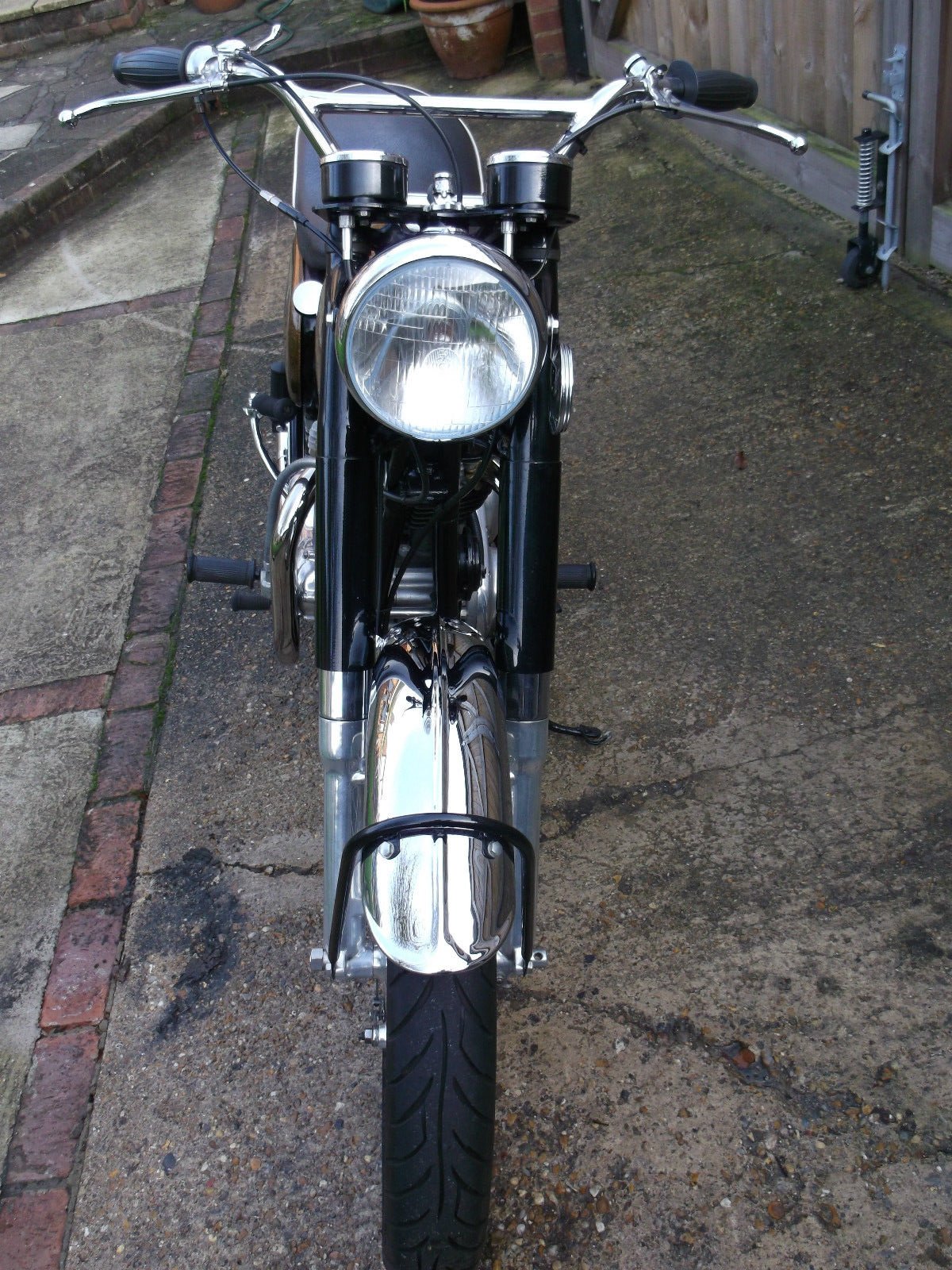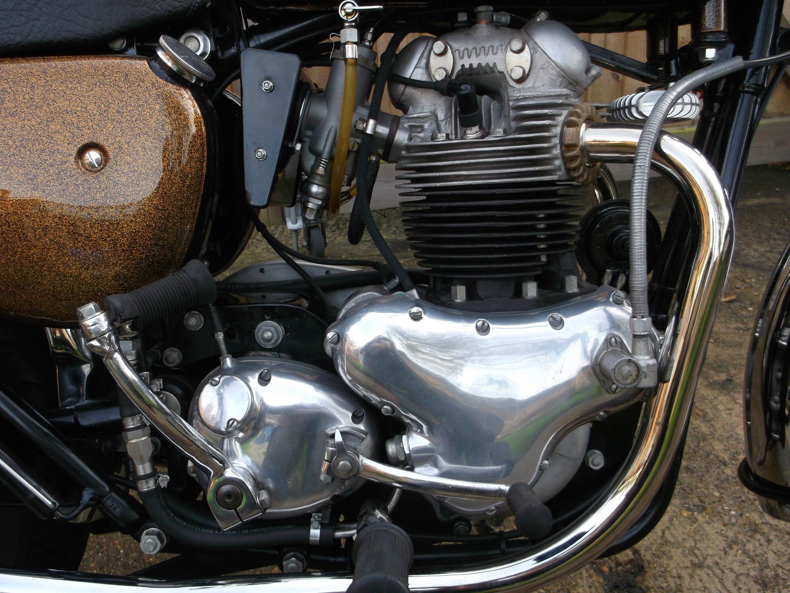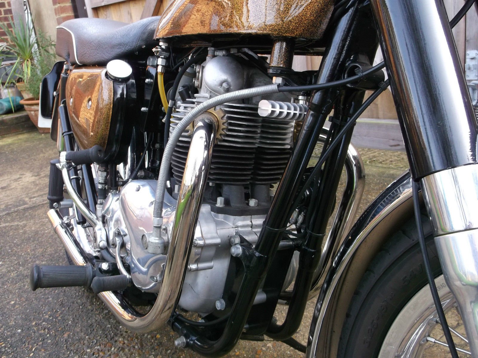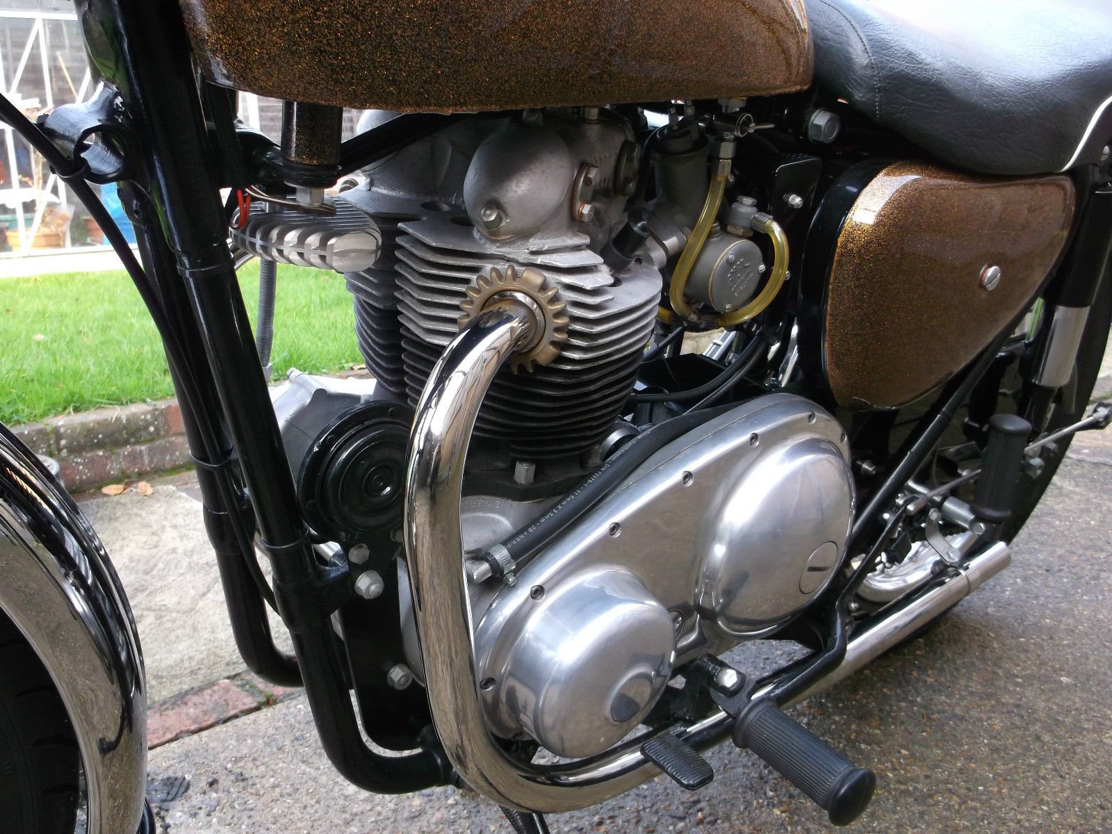 It has twin chopped 389 monobloc carbs with filters and the clutch has had Barnett plates fitted.