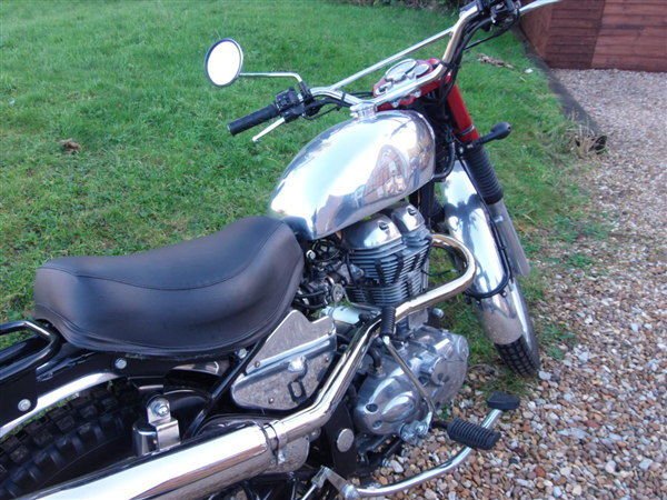 THIS BIKE HAS BEEN CONVERTED FROM A STANDARD ROYAL ENFIELD ELECTRA TO A TRIALS. USING PARTS SUPPLIED BY HITCHCOCKS. IT HAS 18" REAR & 21" FRONT ALLOY RIMS WITH ROAD LEGAL TRIALS TYRES & AN ALLOY FUEL TANK.
