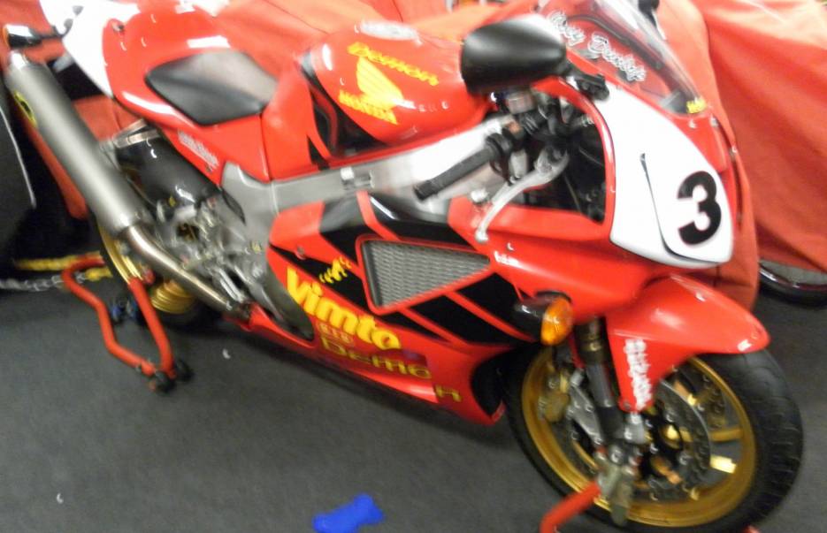This is a special Honda which was built by RS performance. replica of the last bike raced by Joey Dunlop. which he won the TT Senior on in 2000.