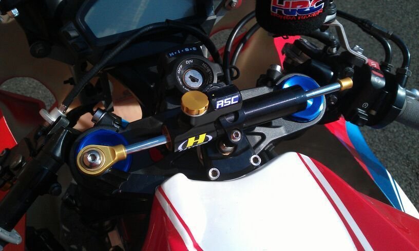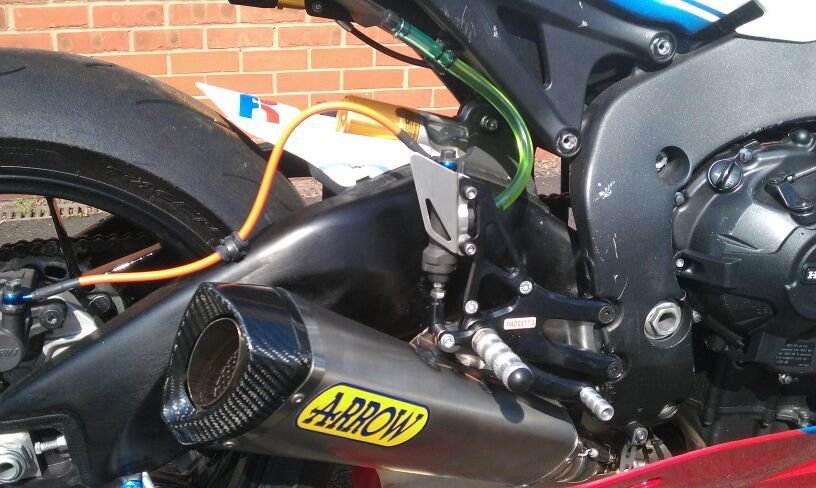 full arrows exhaust with removable db killer the carbon end cap has a small scuff on it. John o'halloran ohlins shock set up from factory honda, new Ohlins forks custom steering damper brembo master cylinder, braided brake hoses hrc rear brake kit, hrc subframe not in the pics but fitted now, full bazzaz system (traction control. quick shifter. two mapes) fully dynoed and set up carbon fiber ram airs with spare glass ones race rearsetsspare 2012 front forks spare 2012 rear wheelset off wets new battery hrc quick action throttle standard spare