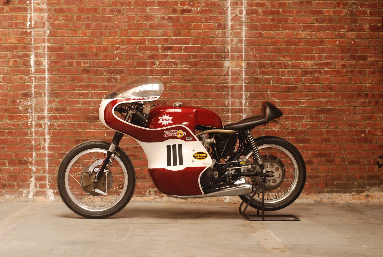 This is a very tricked out bike. one of approximately five built. It was restored by Don and Rob North. and later re-restored by Team Obsolete. It is race ready. The motor has been converted from E. T. ignition to Lucas racing magneto.