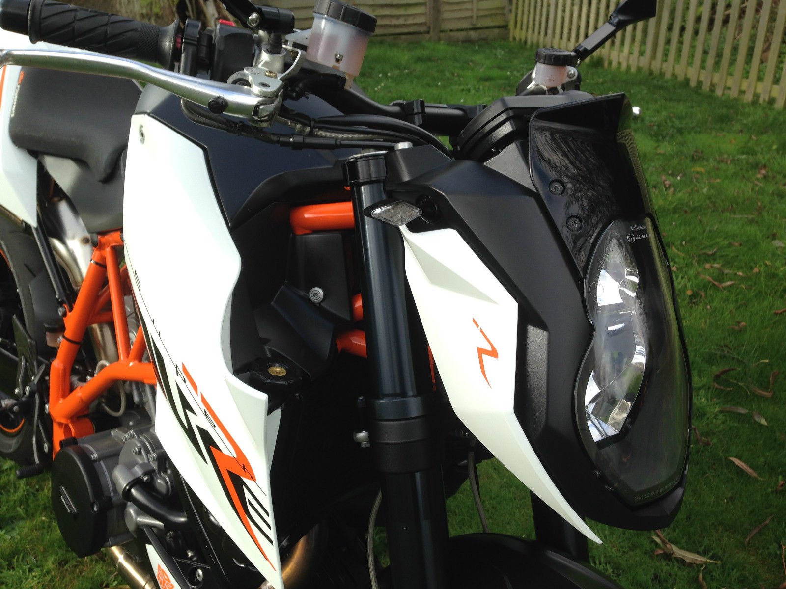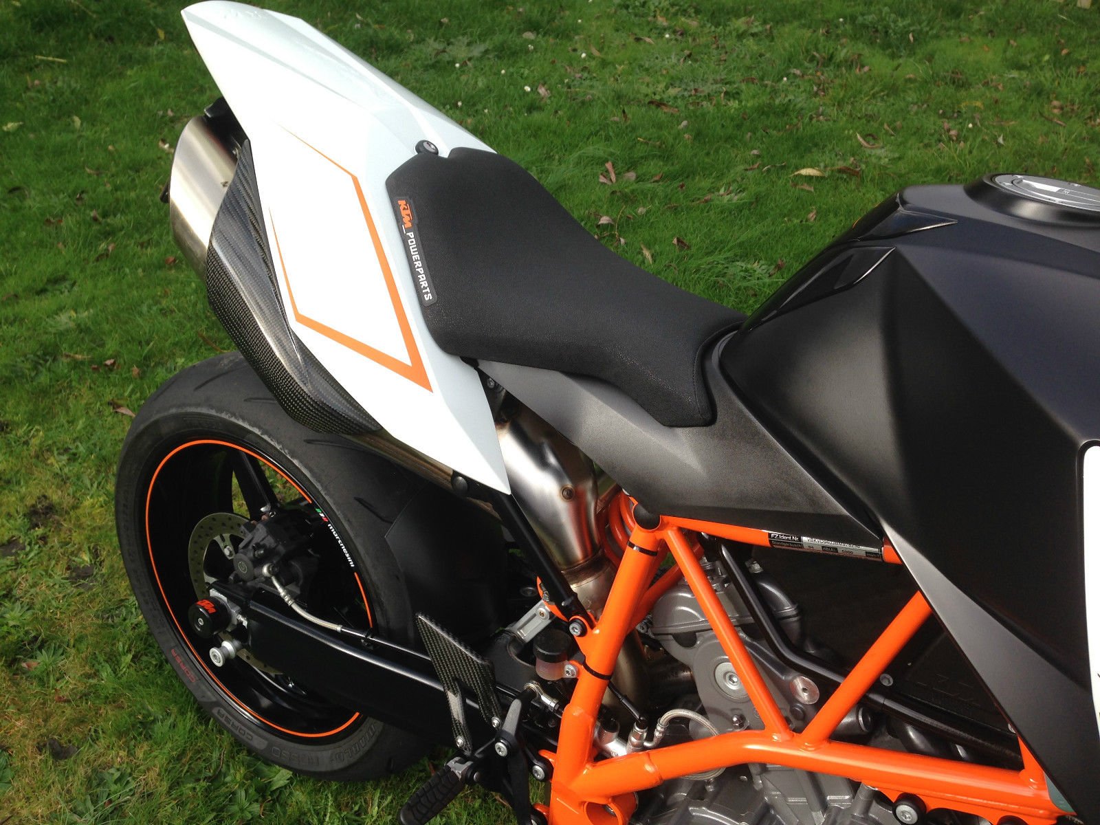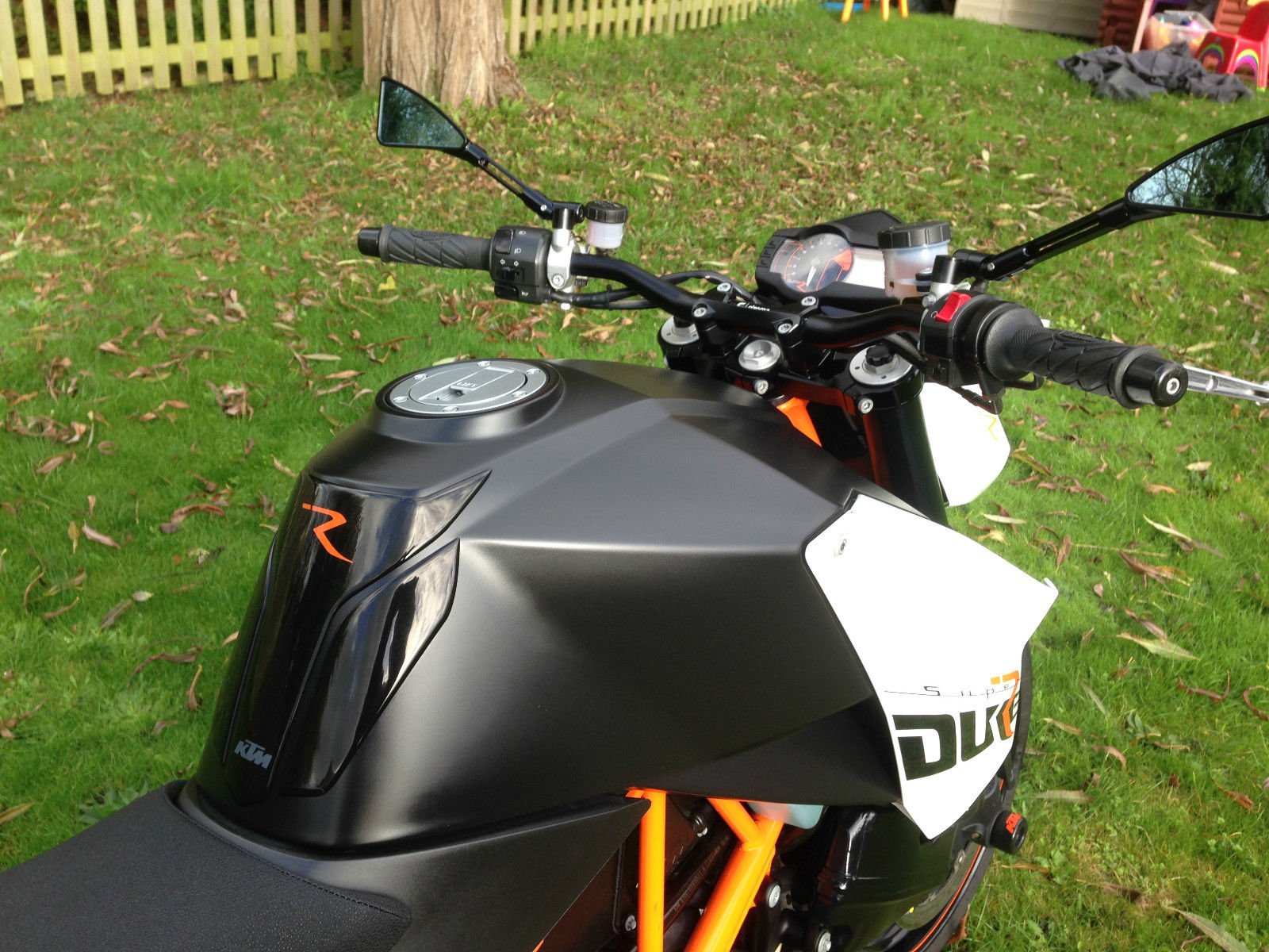 Rizoma low rise bars, Rizoma tail tidy, KTM gel seat, GB Racing engine protectors, KTM sliders, KTM tank protector, G2 throttle cam system, Integrated custom fitted GIpro gear indicator, Led indicators, Tomhawk mirrors, Carbon fibre exhaust heat shields & heal guards.