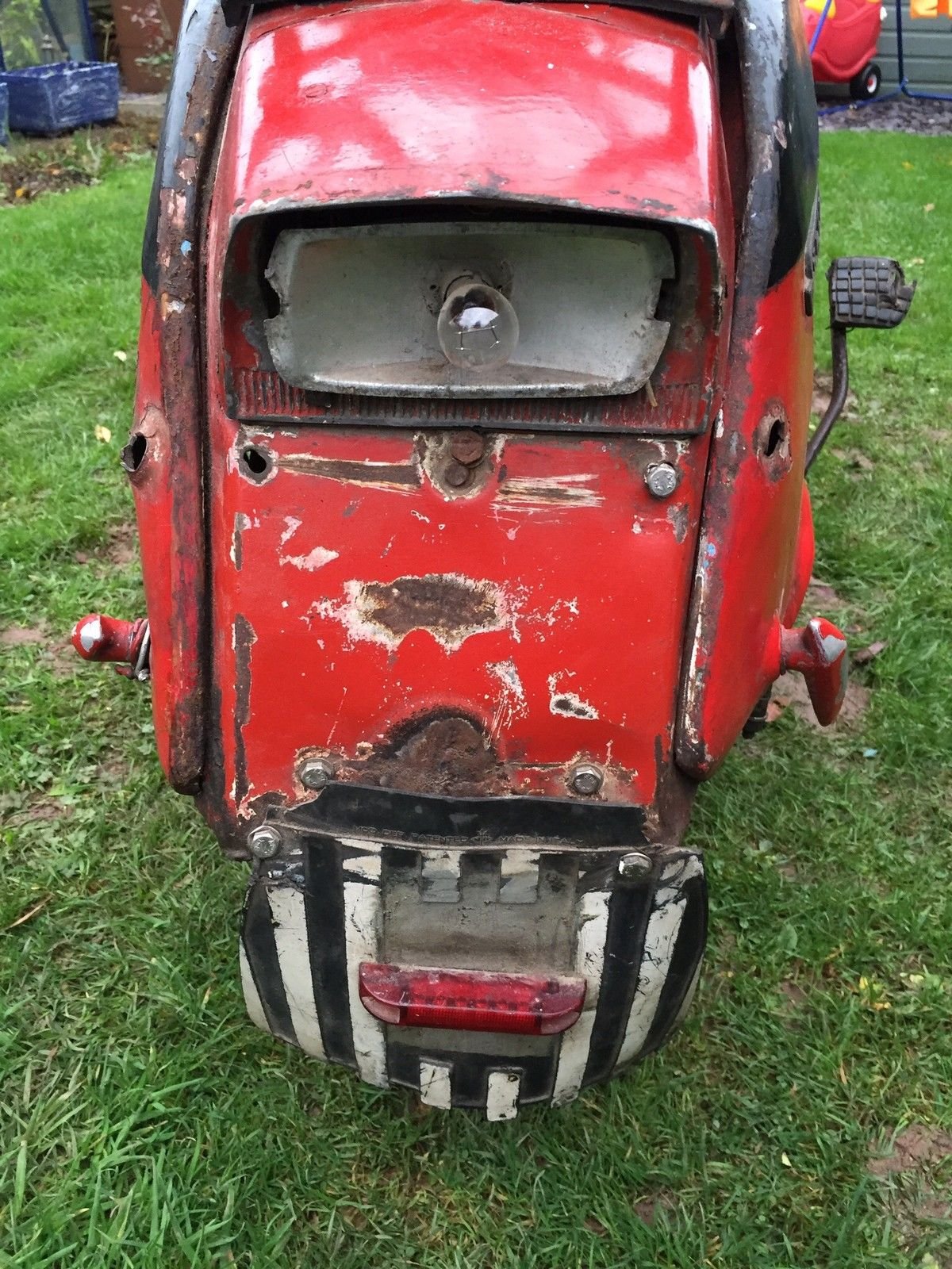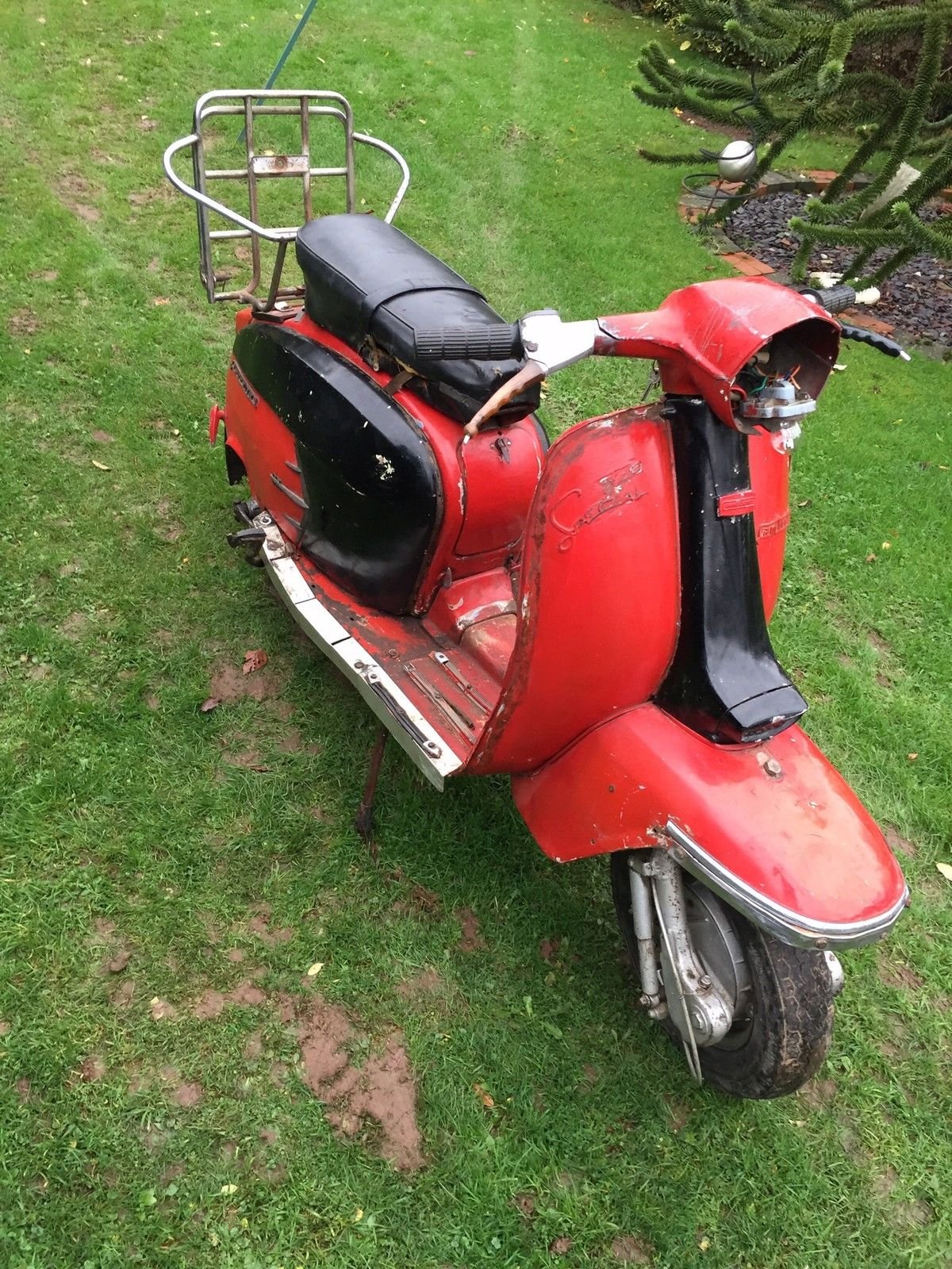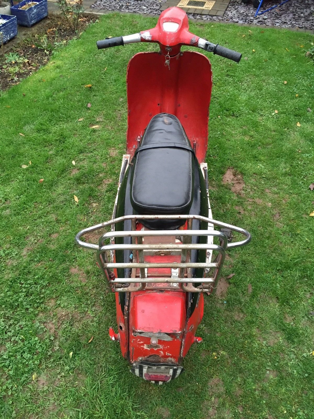As you can see in the photos unfortunately the scooter has suffered a hard life in the last 40+ years along with a bad paint job and some knocks and bangs so is in need of a full restoration cosmetically and mechanically Included with the sale of the scooter but not pictured I do have a originial innocenti good fitting head set top and originial decent condition innocenti front Mudgard. I also have a set of leg shields also originial innocenti but need repairing.