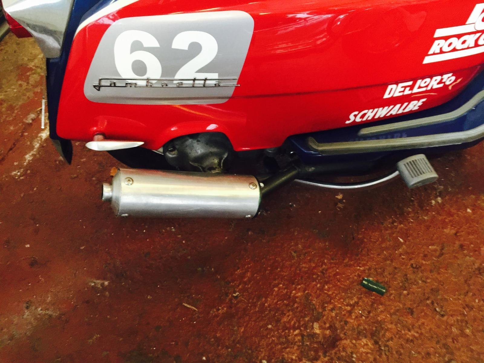 Italian Lambretta Li 150 /175cc. (Reg. as 125 ). finished in blue/ white/ red. sports exhaust. sports seat. upgraded carb. clutch etc. racing decals. spare wheel. front shockers. mess light protector. ring for spec. stunning scooter.