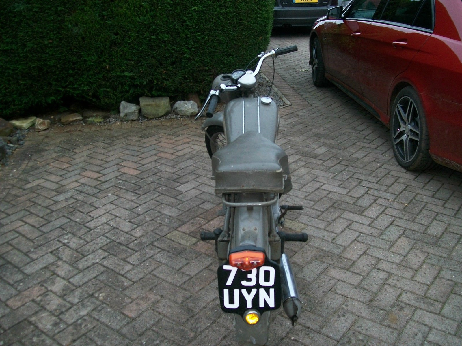 A genuine matching numbers 149cc BSA D3 Bantam Major in virtually original condition. (i. e. not restored). Avery low mileage and a certificate of authenticity from BSA Bantam owners club. Comes with the original bill of sale from Peter Guest of Kings Lynn Norfolk and signed over a 2d stamp. This particular model D3 Bantam Major was only made for two years and consequently quite rare especially being in near original condition. Has a current MOT until July 2016 and registered with DVLA as an historic vehicle with age related Number plate and therefore being Tax Free. Has its original tool kit in pouch and a well thumbed original handbook. Comes with a pile of old MOT certificates. some bills and set of new transfers and a few gaskets. Genuine reason for sale I can no longer ride it! A tailor made trailer is available at extra cost if required.