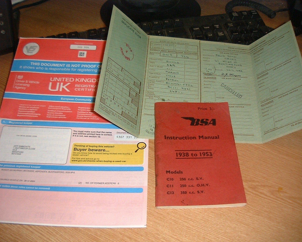 COMES WITH ORIGINAL INSTRUCTION MANUAL 1938-1953 AND V5 LOGBOOK.