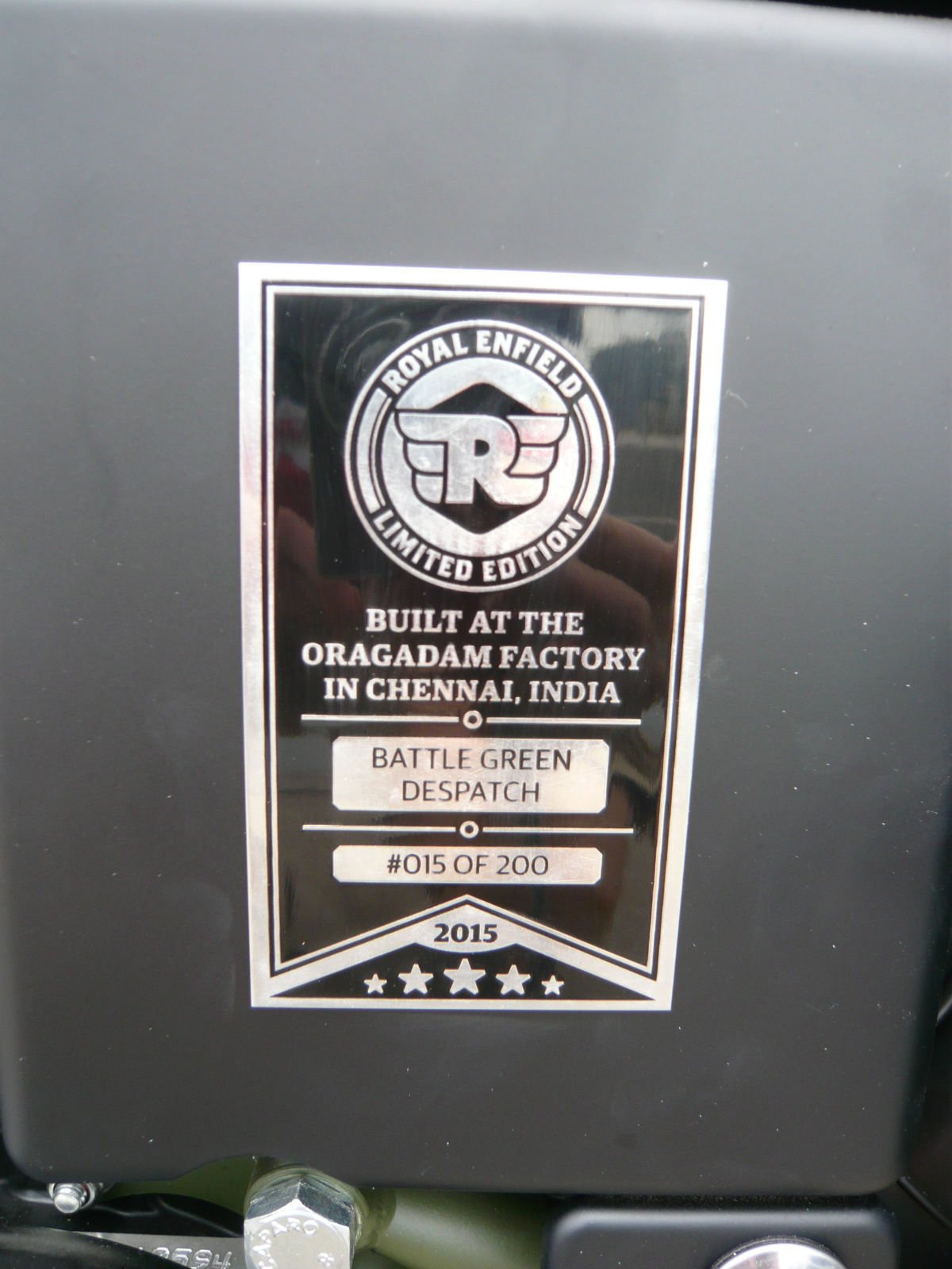 Each motorcycle bears a unique embossed aluminum hallmark detailing particulars of its manufacture.