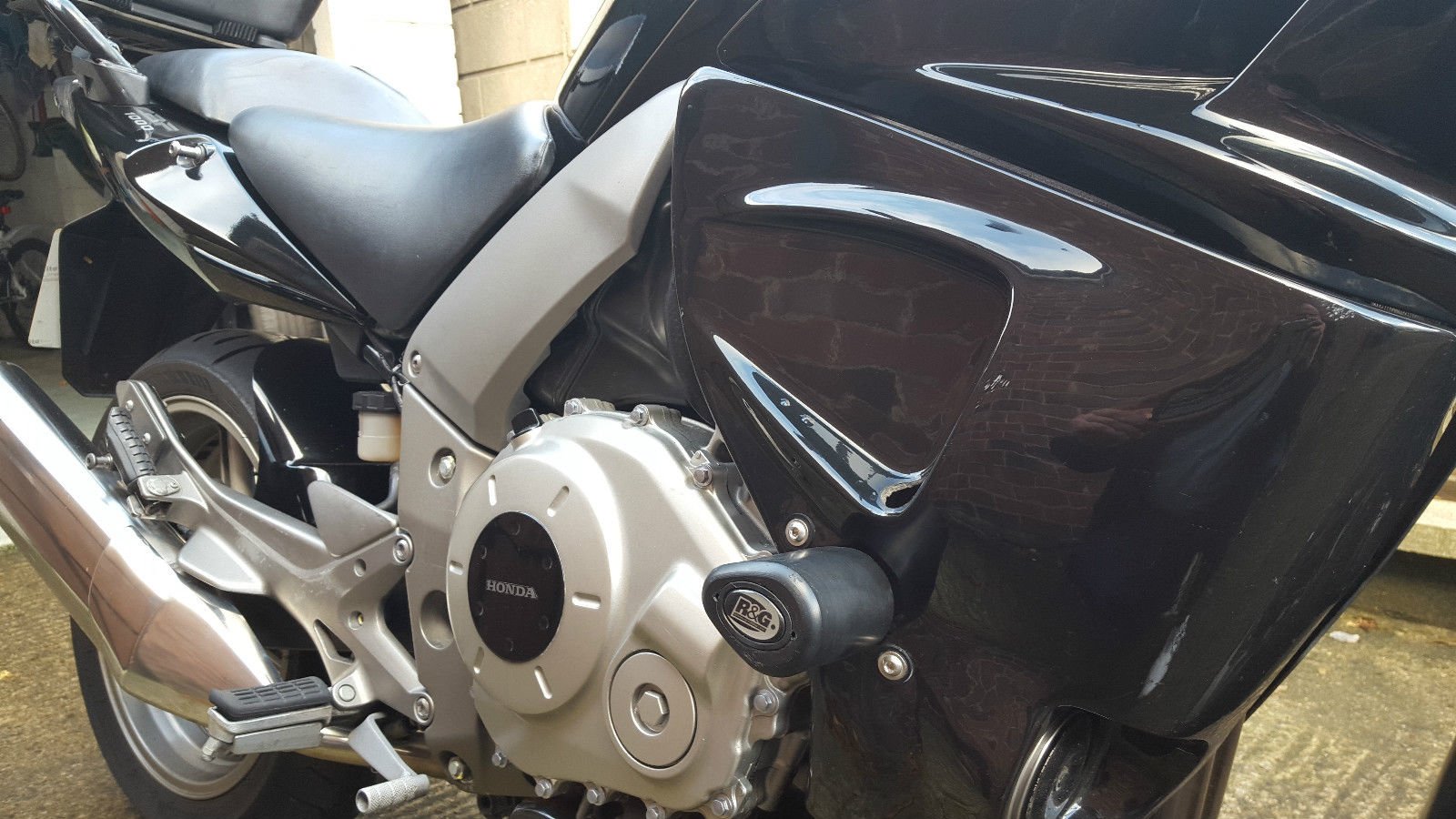 Honda CBF1000 in black. 21000 miles. 2 keys. Service history. Full fairing. Belly pan. Rear hugger. Fender extender. R&G Crash bobbins. MRA screen (plus original). Gel seat. Radiator cover. Chain oiler. Decent tyres. Recent new rear shock & upgraded front springs (2000 miles). Honda luggage rack and box (including 2 keys). Gear indicator. Recent Rectifier/regulator. Charge light indicator fitted. Power Commander 5.