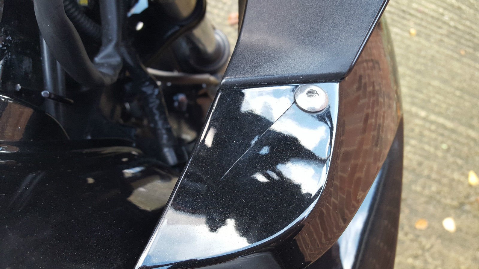 Small crack on top fairing & has been touched up where bungees have scratched the paint near the seat.