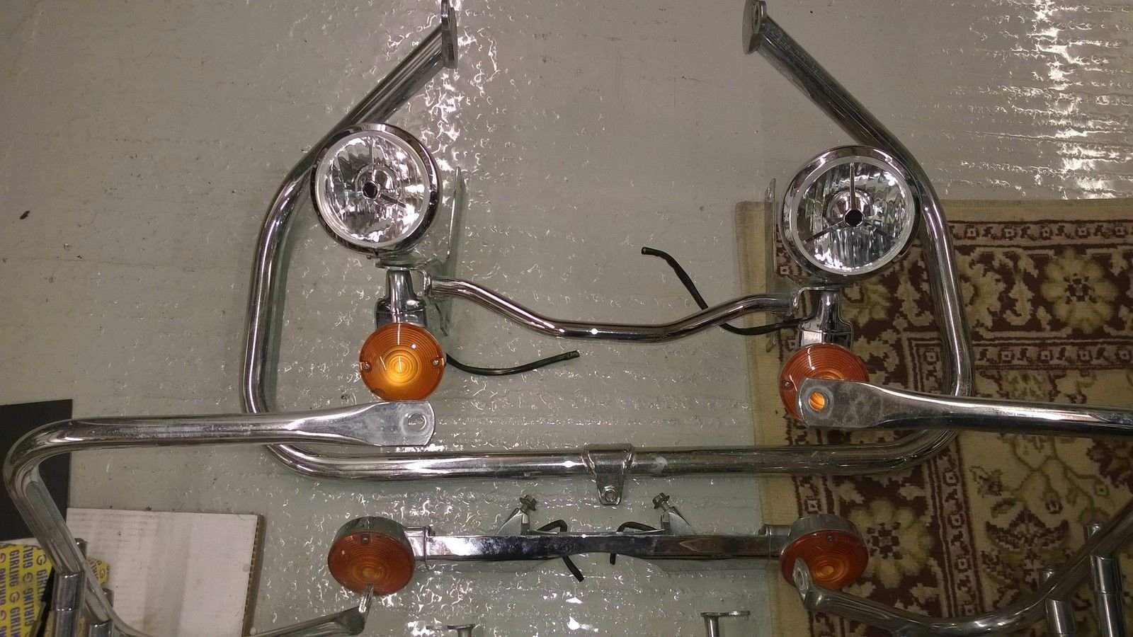 ALSO CENTER STAND. SINGLE SEAT AND TWIN SEAT NEW PASSENGER FOOT PLATES. ALSO HAS STANDERD SEAT HAS TOP BOX NOT FITTED BOX TOP CHROME GUARDS A LOT OF EXTRAS WORTH A FEW POUNDS.