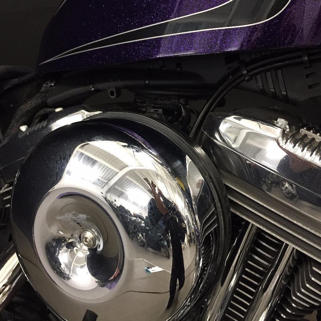 Wow. this really is a bike to show off on. Amazing looking machine in factory. deep. metal flake paint and gleaming chrome. Beautiful. pretty much as new condition. The first owner has fitted standard controls on it from an 883 sportster but it does come with the original. un-used forward controls too. It is supplied with all the books. first service stamped up. 2 fobs for the keyless ignition security system and it is HPI clear. Mainland delivery £130. Ireland £250. All bikes have a thorough safety check. Low cost Finance prime and sub prime. Debit cards free. credit cards 1.5%. PX. Balance of Harley warranty. We are 5 mins from Dartford railway station and a couple of mins off the M25 near the Dartford Crossing. Low cost Finance prime and sub prime. Cards. 3 month warranty free or 1 year warranty for 150. Viewing by appointment. We are 5 mins from Dartford railway station and a couple of mins off the M25 near the Dartford Crossing.