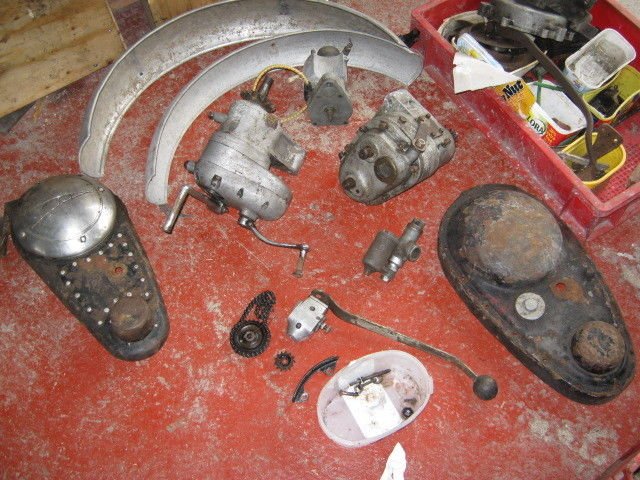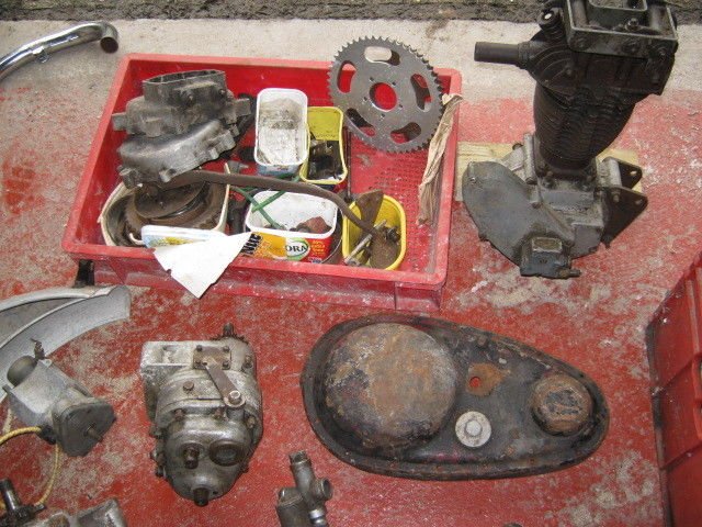 2x engines, both turn over. Not the right gearboxes but early BSA, and they will fit. The wheels have been rebuilt 19", but I do have a 20" rim somewhere to go with it. The tank is solid. Lots of bits to get started to make a special.