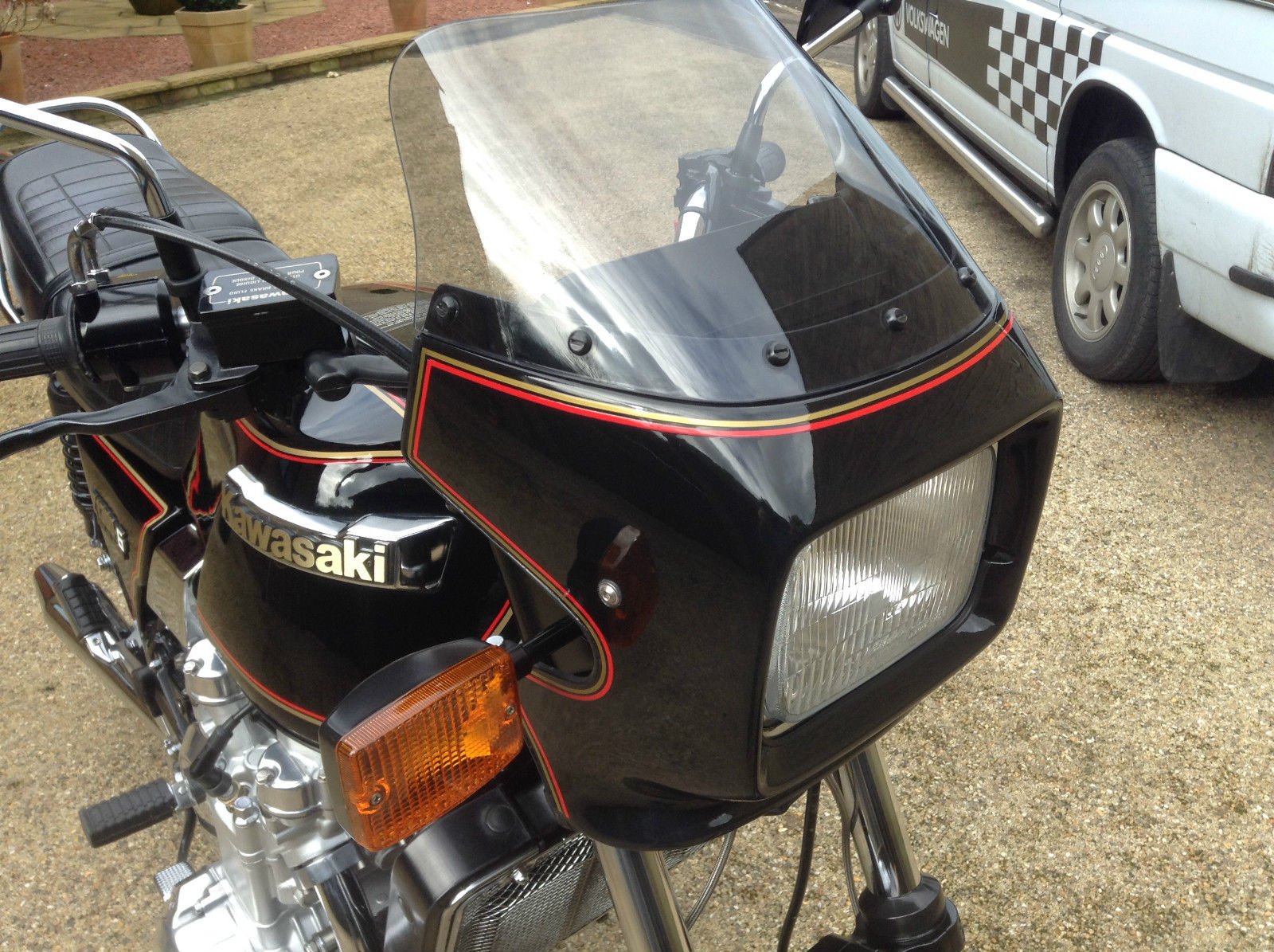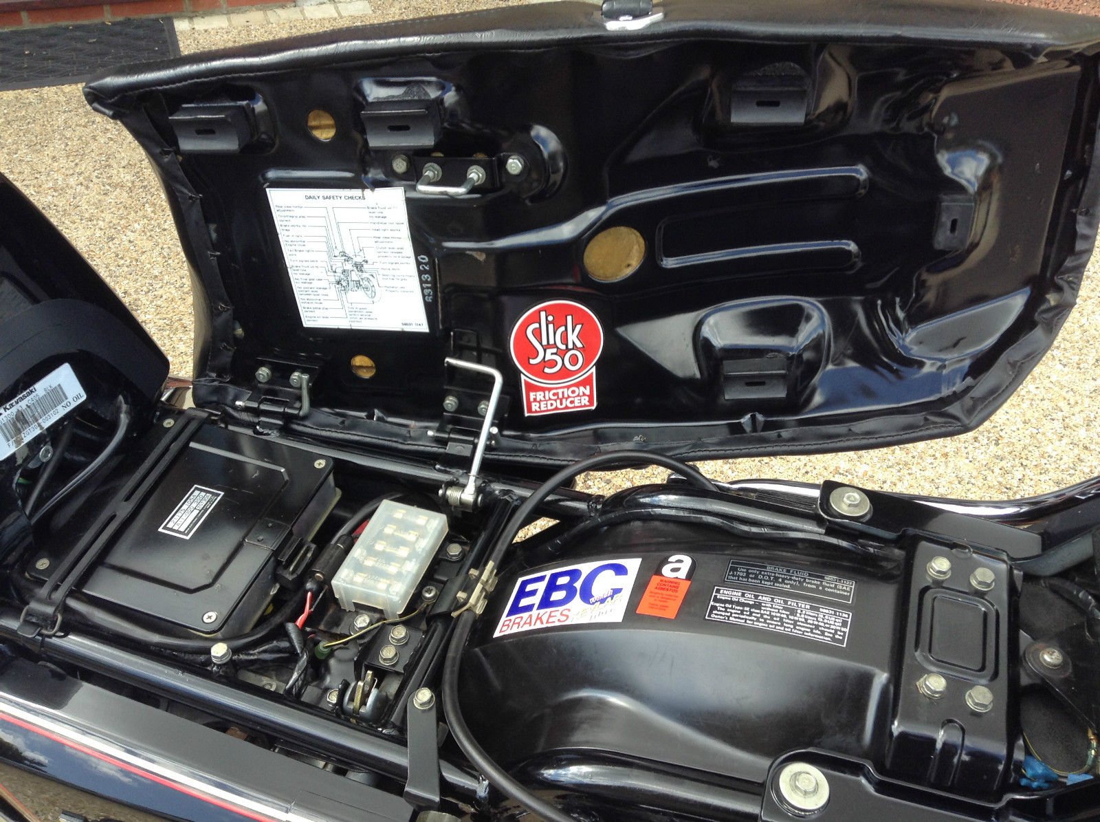 The bike in its current form. benefits from new Progressive Suspension rear shock absorbers and Avon Road Rider tyres which. in combination with braided brake lines and modern pads. transform the handling and stopping power of the bike to a level only dreamed of back in the day.