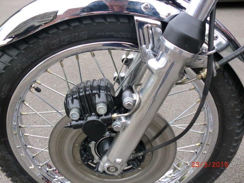 Re-chroming includes headlamp rim. headlamp ears and bottom yoke covers. front mudguard and brace. gear change lever. pivot and linkage. kickstart. rear brake lever and brake hub lever. top and bottom yoke yoke nuts and bolts. h/bar bolts. brake hose bracket.. rear footrest bars. grab rail. and the rest!