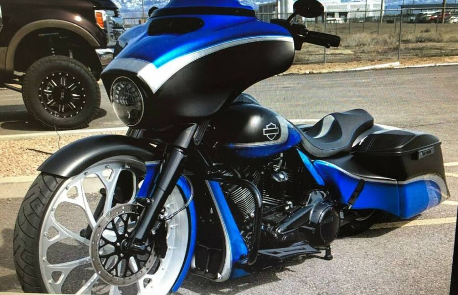 Harley-Davidson CVO Road Glide Touring with only 477 miles, PRISTINE condition! Bought off showroom floor at Pikes Peak H-D in Colorado Springs. Selling because no time to ride. Milwaukee- Eight 117 cubic inch displacement, CVO Mako Shark fade paint option (blue/black), wireless headset with blue tooth interface to the Boom! BOX GTS infotainment system featuring touch screen, fang front spoiler for dramatic low profile appearance, Screamin' Eagle Heavy Breather intake for a bold hot-rod style, premium 21 inch front and 18 inch rear wheel and Klock Werks windshield has been added. This beautiful motorcycle has been kept in a climate controlled environment.