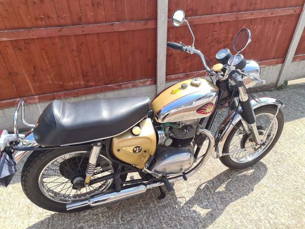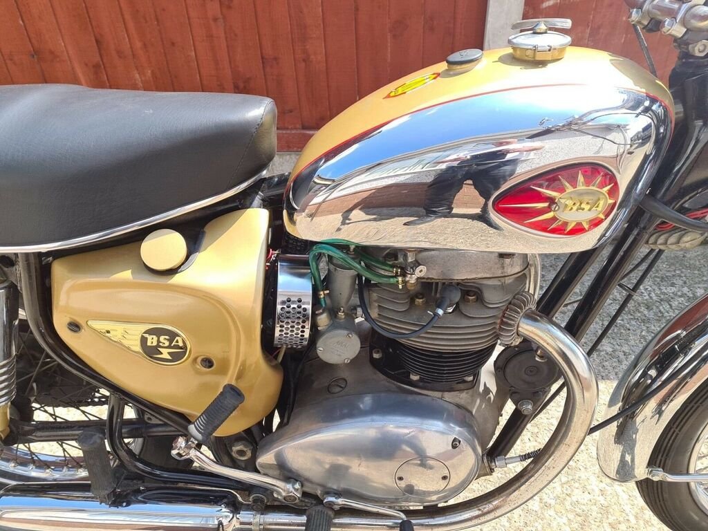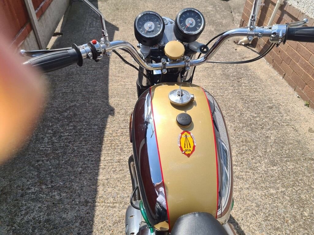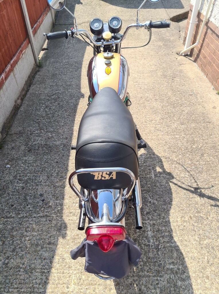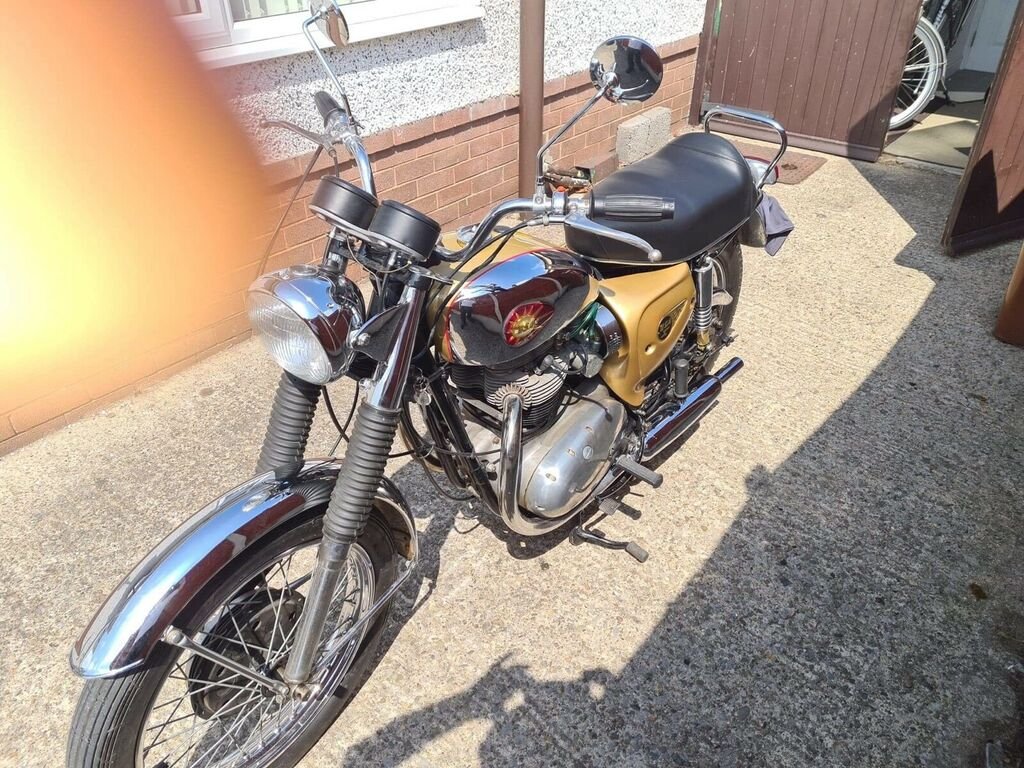 Here is my 1966 BSA Lightning in stunning factory Gold. It has just had a full oil and filter service and the carbs ultrasonically cleaned with a new gasket set fitted and benefits from electronic ignition so starts, runs and rides perfectly. Chain, sprockets and tyres are all in excellent condition and I have replaced the seat with a new BSA hump back style unit (as fitted standard) and it has all new rubbers all round. Whatever I have had done, I have tried wherever possible to keep it as original as it was in 66.The mileage shows 29936 and whilst I cannot verify this as accurate, the way it runs and rides, it almost like new. Although Tax and MOT exempt, it was MOT'd in Nov 20 with no advisories. This is a matching numbers bike and was exported to America when built in 1966 then imported back in 2017 with only 11672 miles on it (I have the certificate of title and UK V5) and had only 1 owner there with me being only the 2nd UK owner here. A couple of minor points though, There is a chip on the tank (about 1mm in diameter) but that is hardly noticeable and all the chrome work in very good with only a couple of minor blemishes, one on the headlight and one on the very bottom of the rear mudguard but again, hardly noticeable. It is not therefore a show winner but presents very well and looks stunning in Gold with the chrome rather than the more common Red or Black I see everywhere. This bike deserves to be ridden more than I can so get some British bike fun for the summer. You won't be disappointed. I will accept cash on collection if a non refundable deposit of £250 is paid via bank or PayPal or Bank transfer. I will accept PayPal if the buyer pays their fees. If you have any questions just message me.