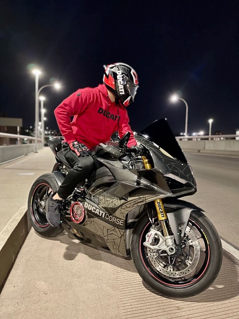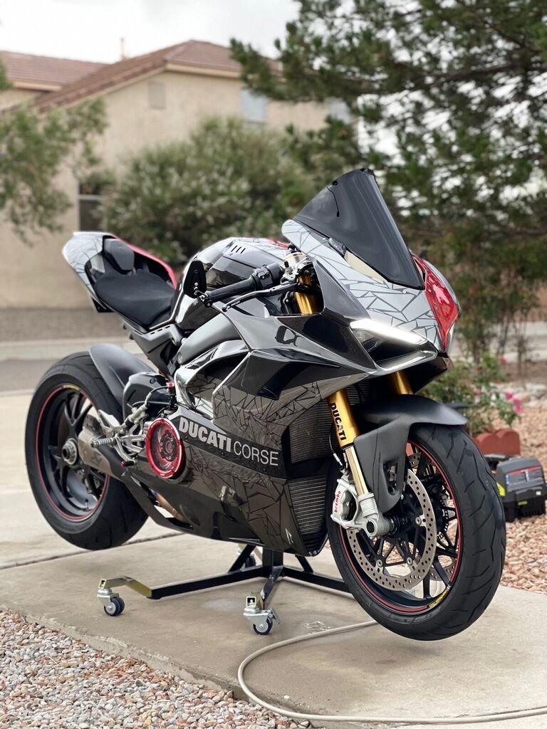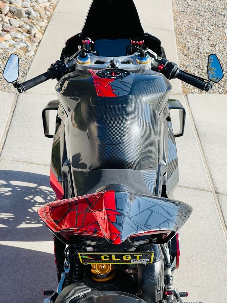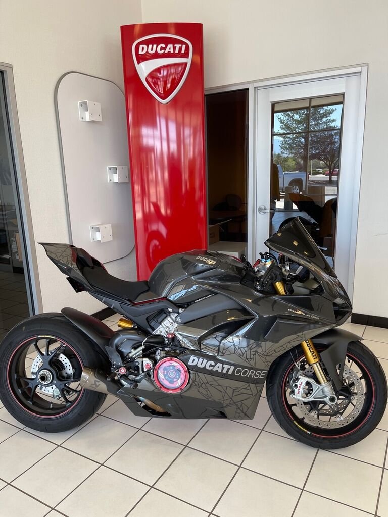 This 2018 Ducati Panigale V4 is an original. The owner has had it for 4 years. The vehicle runs great and is mainly used for auto shows. MY 2018 Panigale V4S full Carbon Fiber is for SALE! Here are some noticeable mobs (too many to list) - Full CF fairing with Two face chrome design - Full Akra System - Shift Tech Rear Set - Custom CF winglets (MotoGP style) - Clear Clutch Kit ( Ducabike) - SLR tuning - Both front and rear tires changed 1000 miles ago - Many more!