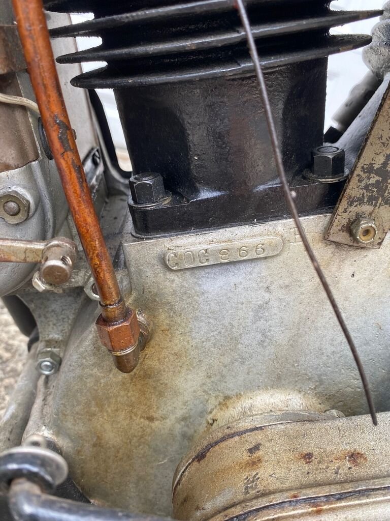 The engine has compression and was told to be running. Looks to be number matching as the frame appear (hard to read for sure) 303866. I added a picture of this