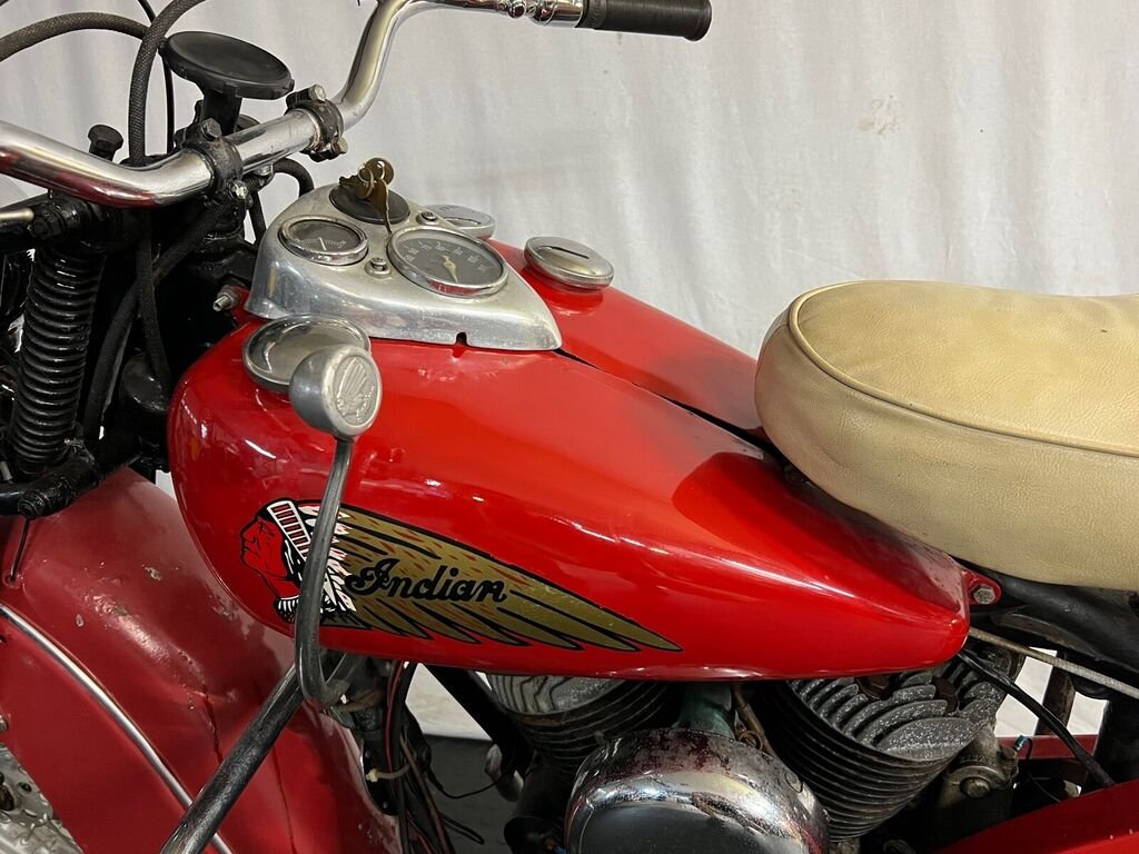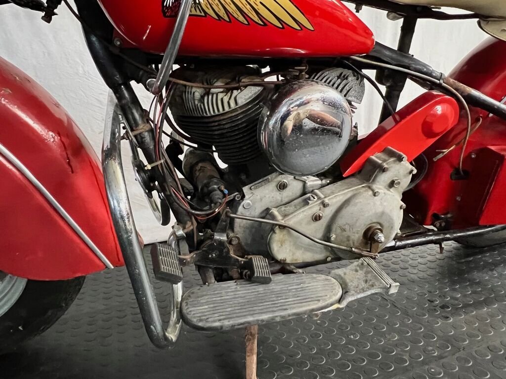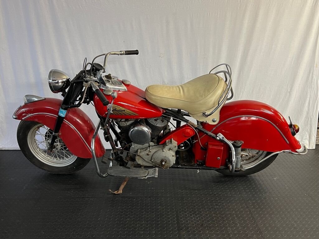 Up for sale is a 1947 Indian Chief Motorcycle. Frame # 3479025. Engine # CDG4387. 37,884 miles. It currently does not run. It has been sitting since 1987. Motor is seized from sitting. It will need to be gone through mechanically to run again. Missing some pieces Exhaust headers are rotted (see Pictures). Looks to be an older 1980s restoration. To the left of the engine number looks to have a corrosion crack in the case (See picture). Chrome has rust/pitting. Front brake does work, rear brake does work. Rolls fine. Shipping is buyers responsibly. More pictures available upon request. Bike is sold as is. Shipping is buyers responsibility. Will sell Worldwide. Located in Syracuse, NY 13057.