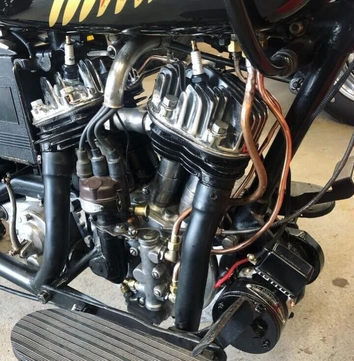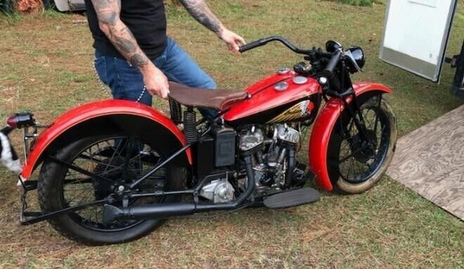Up for sale we have a real nice 1940 indian scout, Looks like an older restoration was done at some point, paint is real nice no major scratches, dents or dings. The engine looks like its been polished and the heads look like they were nickle plated and also has some chrome pieces done. ive owned the bike for a good amount of years now and its been in my collection, it was running a few years ago right before covid, afterwards i emptied the gas tank and had it sitting in my living room. I kick it over weekly but haven't started it, it has great compression though. The front brake shoes are missing (i misplaced them when i moved) but the brake drum mechanism works. The rear brake is fine. Clutch works and transmission gears are good. The battery also needs replacing, i purchased that original style 6 volt one from ziggys back in 2020. Also the wiring to the rear tail light is there but needs to be extended. Overall a real nice unit, not many of these were produced in 1940 i think the production was around 600 or so. The motorcycle is located in South Carolina. If you need more photos just message me and ill be more than happy to send you what you need.