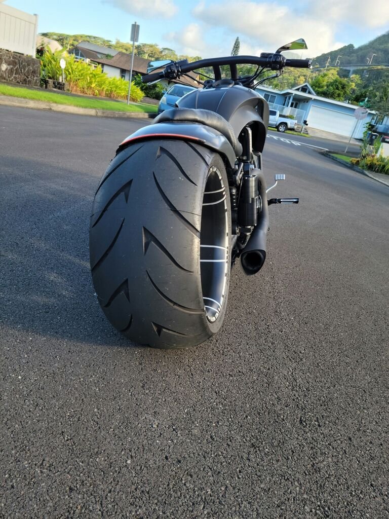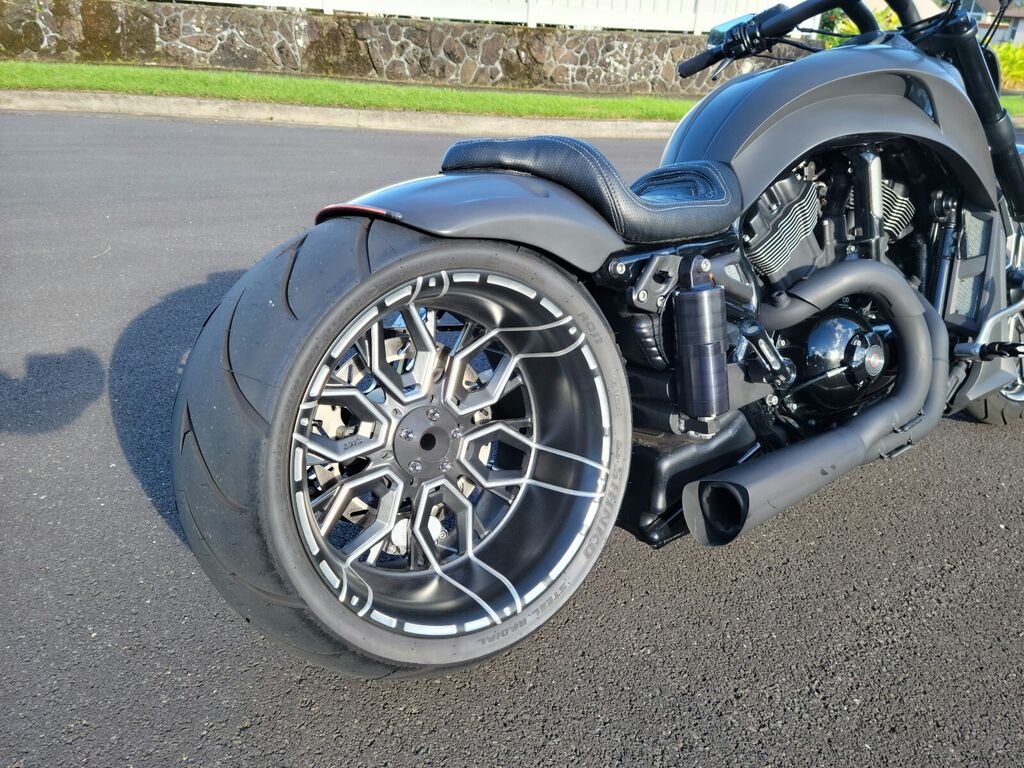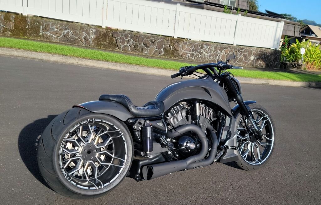 Custom High Quality Bodywork imported from Finland finished in flat black with silver screen inlaysSick custom headlight with LED DRL $1k for headlight aloneOne off custom billet 3D wheels 21x3.5 and 18x10.5 finished in flat black with beautiful contrast machine cut and polish.Top of the line air ride system rearCustom bearing supported offset output shaft bracket systemCustom pulleys Brand new tires still have nubs on them and less than 20 miles on the new build: 130mm front, 300mm rearCustom inboard rear brake with 4 piston PM caliperFront brake conversion to left side only with 6 piston caliper and Oversized rotor; stops better than factory!Beautifully stitched contrast textured seat with steel support for passenger rider, also custom pegs for driver and passenger. Custom left side license plate bracket with led lightVance and Hines 2 into 1 performance exhaust, refinished in flat black Mega fat 1.5in T bars compliment the sinister look of the bikeCustom reservoir covers, grips, pegs, pulley and swingarm pivots in black with contrast cut accentsBike was dyno tuned at Harley Dealership and makes 121rwhpIf you're looking for that pro street, low slung, blacked out, batman looking bike to roll up heavy to the next meet or show and turn heads, this is the show stopper for you.