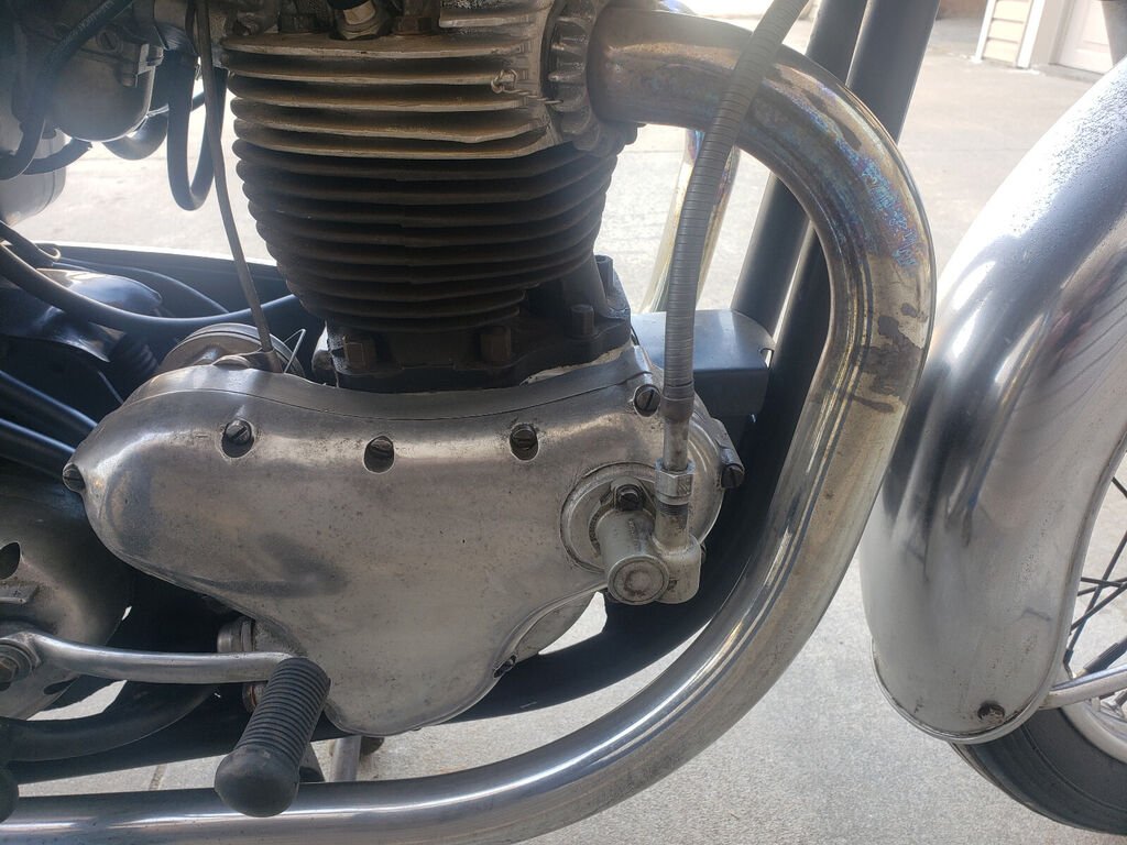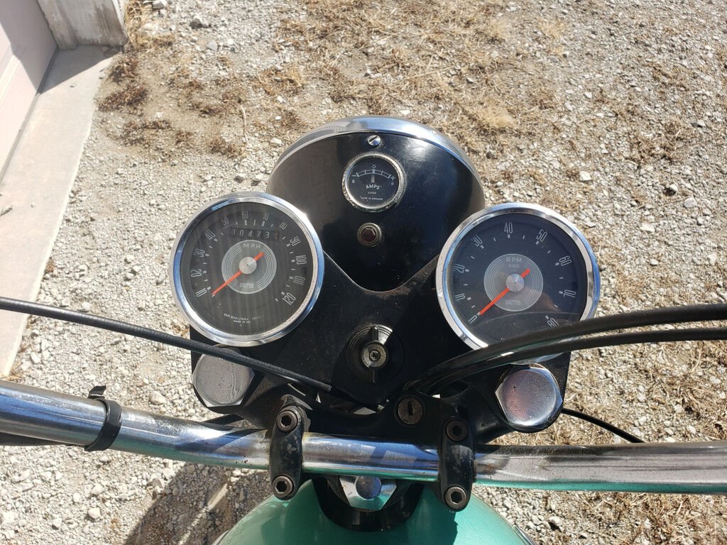 I tried to disprove the odometer reading but could not find one thing. The Avon tire date codes are even correct for 1968 and I replaced the original Avon tubes just for peace of mind because I wanted to ride it. After reassembly, I started it up and tuned it, and then took it for a ride down my country road. The speedometer worked initially for a couple miles and then the needle gave up and rested on zero. The odometer continues to work. All the switches, lights and indicators work. The bike runs great down the road and shifts through all 4 gears with ease. The clutch operates smoothly and the brakes both work adequately. I suppose you could keep this bike at its low miles but I think it should be ridden and seen on the road so other people can enjoy it too. I have a video of the bike running. Please feel free to ask any questions are request additional pictures.