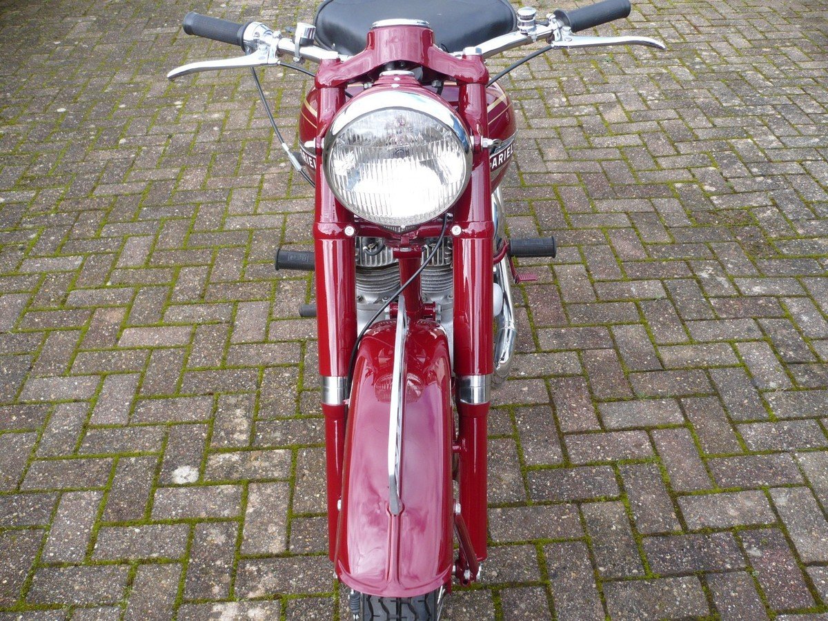 It has the original Solex carb which works fine, you will notice a large air filter on the near side this is a factory fitted filter known as a Colonial Filter, all Ariel machines exported to Far East had one fitted and the export bikes were painted black so I was told. Starting procedure is, when cold switch petrol on and apply full choke, kick engine over three times switch ignition on and set throttle to quarter open and kick it, it will start, when starting from hot/warm, throttle just open and kick it as in the video.
