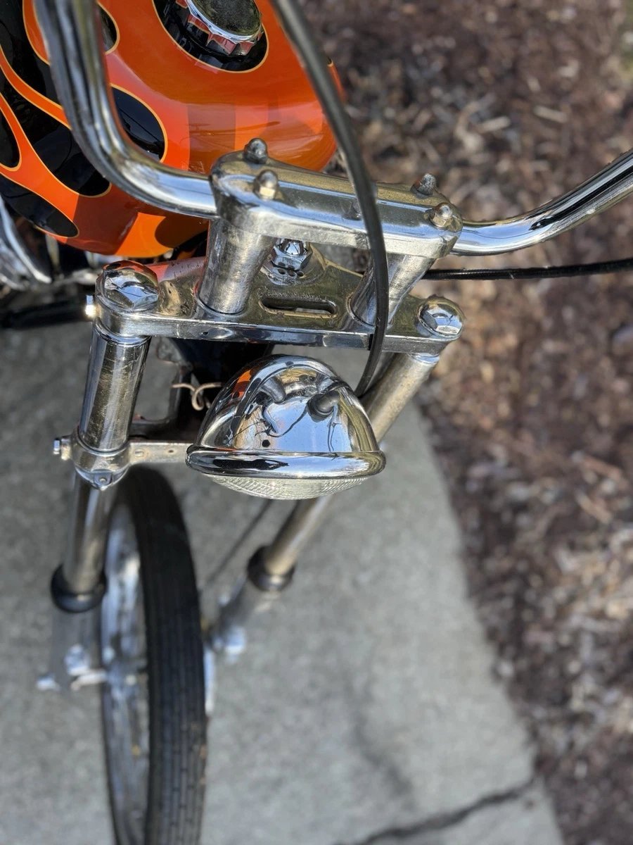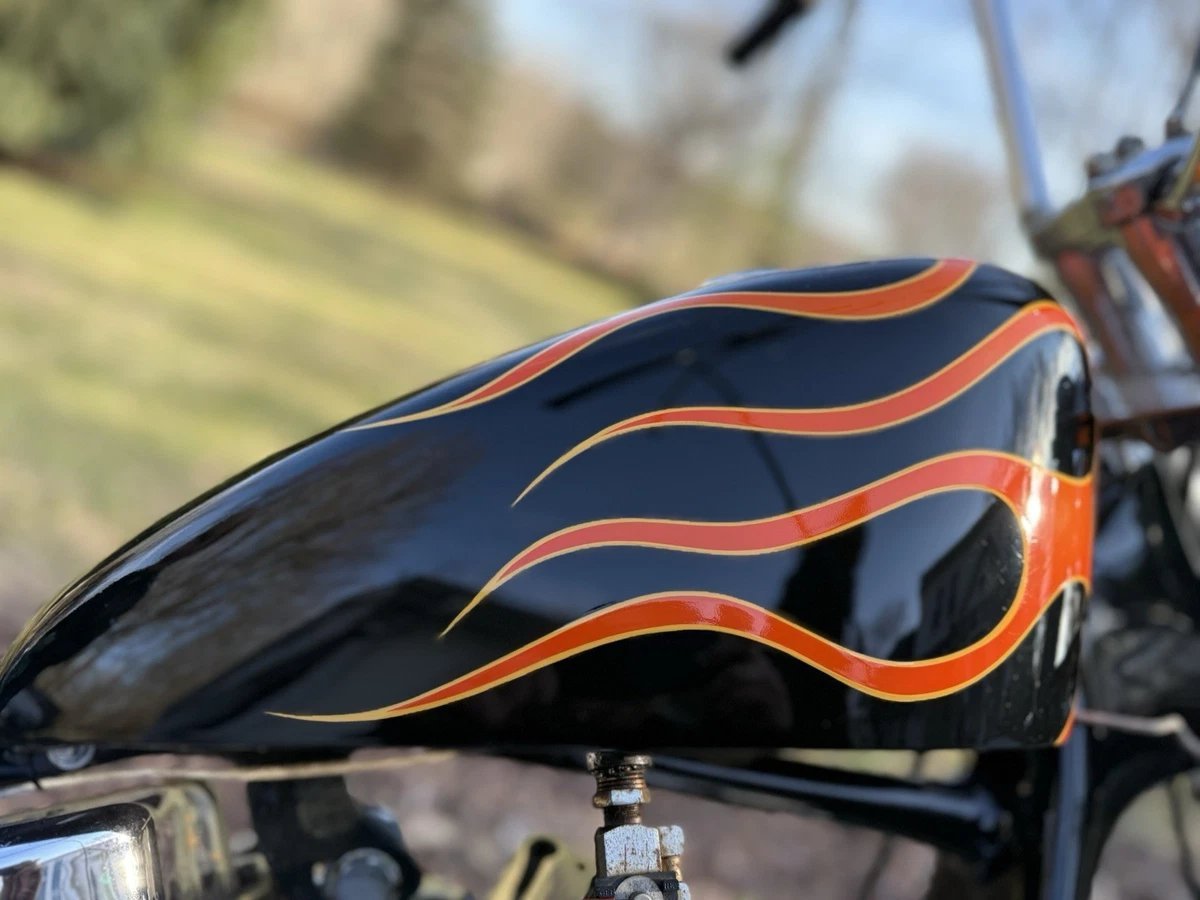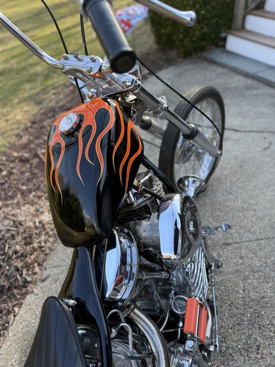 This bike is not for the weak. 1948 engine with outside oiler heads. Polished cases. Matching belly numbers. High performance s&s carburetor. 1948 kickstart transmission. ORIGINAL 1948 HD FRAME molded and painted. King sportster tank with flame paint job. Original 1949 risers, trees, and lower legs, and brake drum on the front end. Original 1948 rear wheel. Original mouse trap. Original oil tank. Bike is a period correct chopper with all items of the time where choppers were king. Beautiful antique piece. Was featured in The Horse magazine. Older chrome on the bike. Bike has been sitting for a little while. Not looking to get it running, just looking to sell it. Pay attention to photos for detail. Bike is being sold in as is condition. If you have any questions send a message or text before purchase. Message me before purchase!